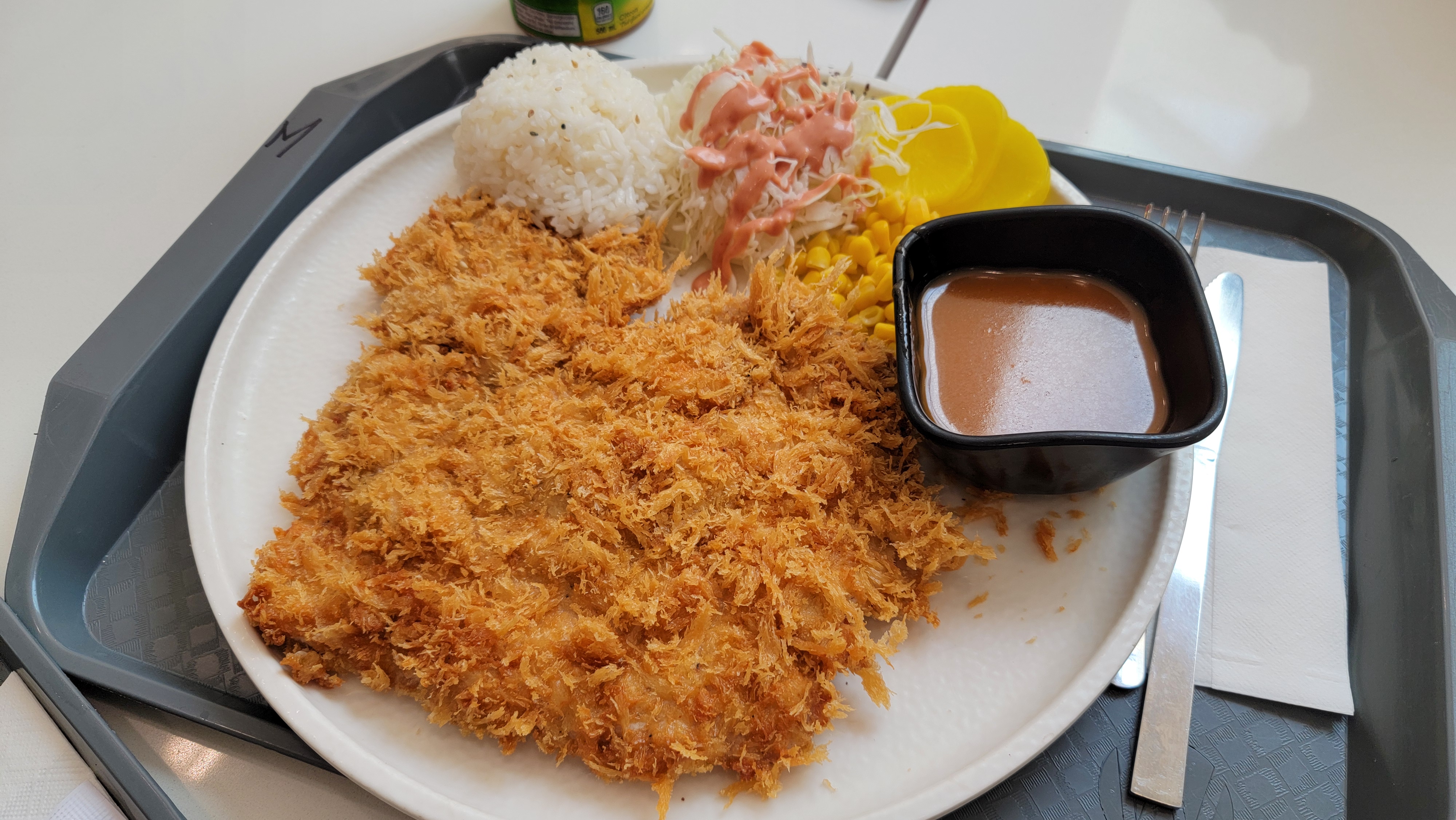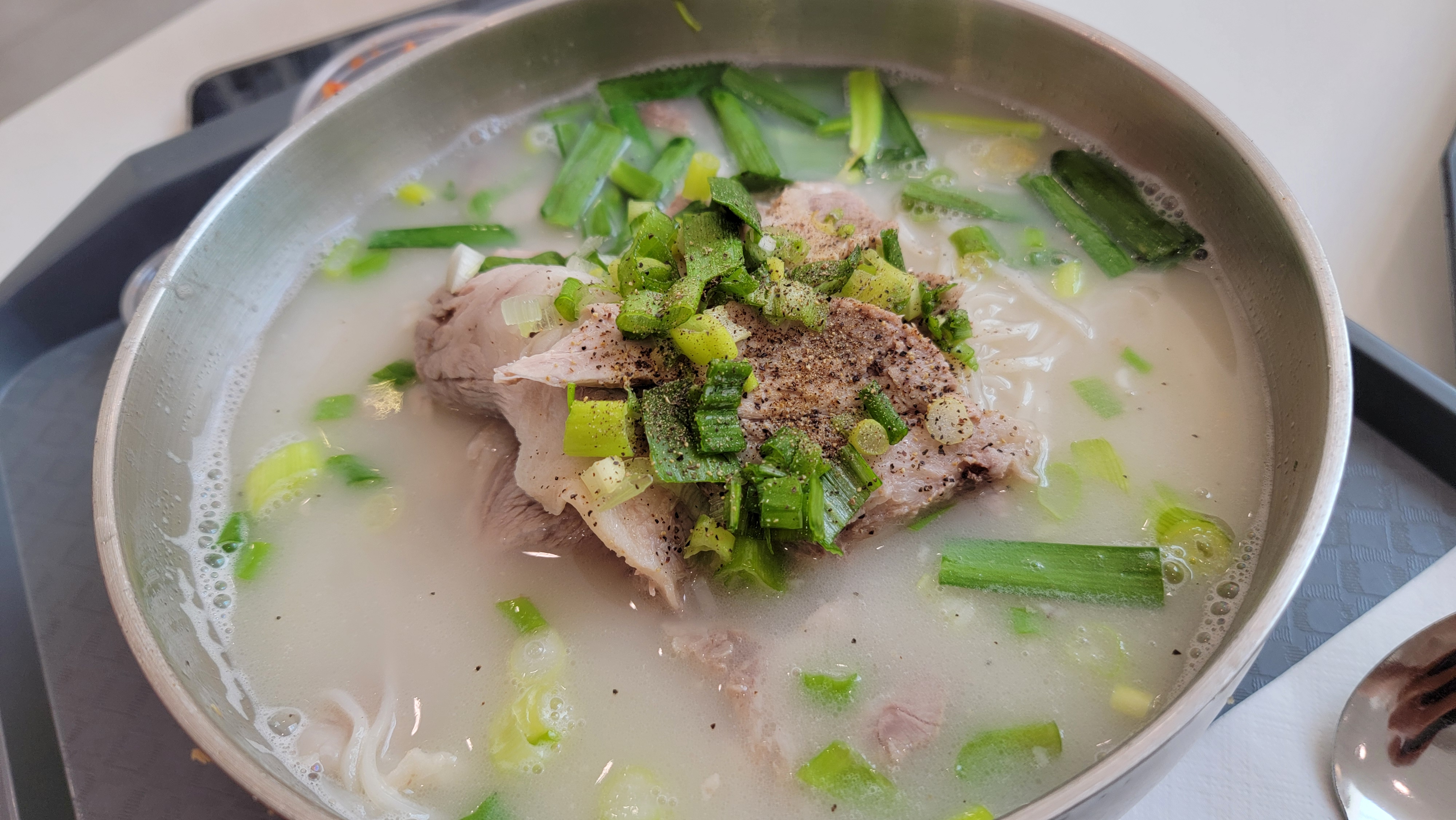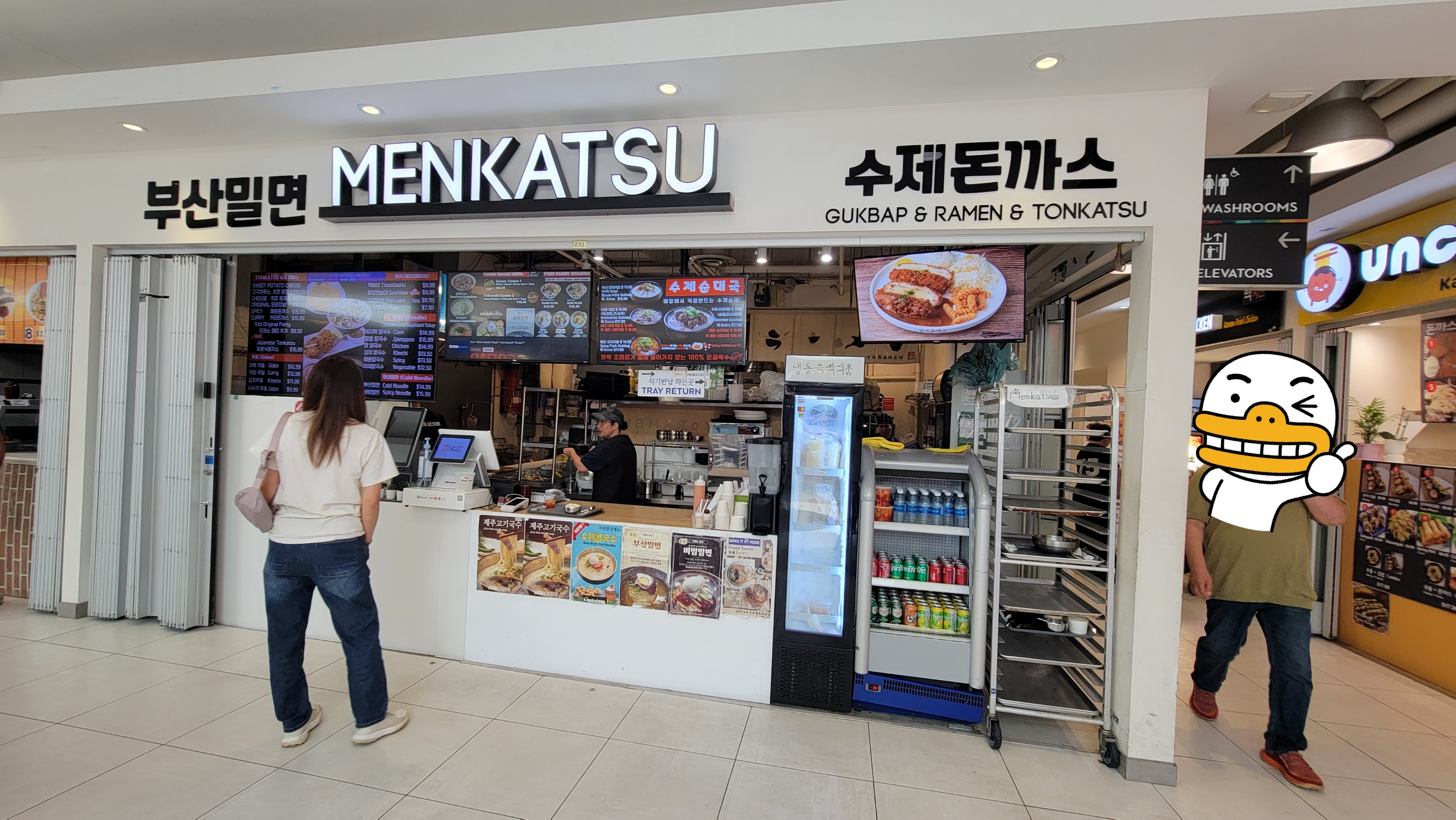 가격도 일반 식당에 비해 푸드코트가 훨씬 저렴해 자주 이용하게 됩니다. 물론 메뉴를 고를 때마다 항상 고민이지만요. 결국엔 가성비 좋고 자주 못 챙겨 먹는 뜨끈한 국밥이나 고기국수를 파는 '멘카츠(MENKATSU)'로 발걸음이 향합니다.