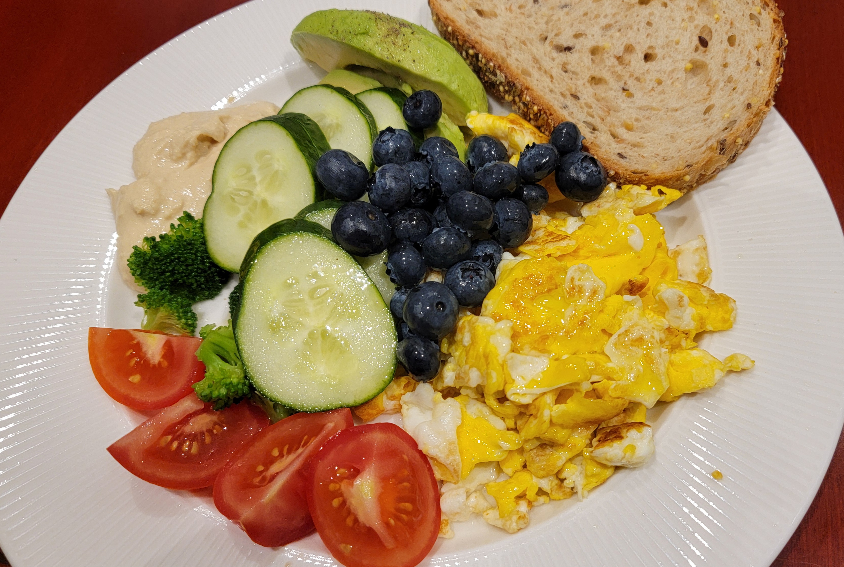 거창한 건 아니고, 탄수화물은 조금 줄이고, 대신 신선한 채소랑 살코기, 계란, 아보카도, 과일, 그리고 통곡물빵을 챙기는 거죠.