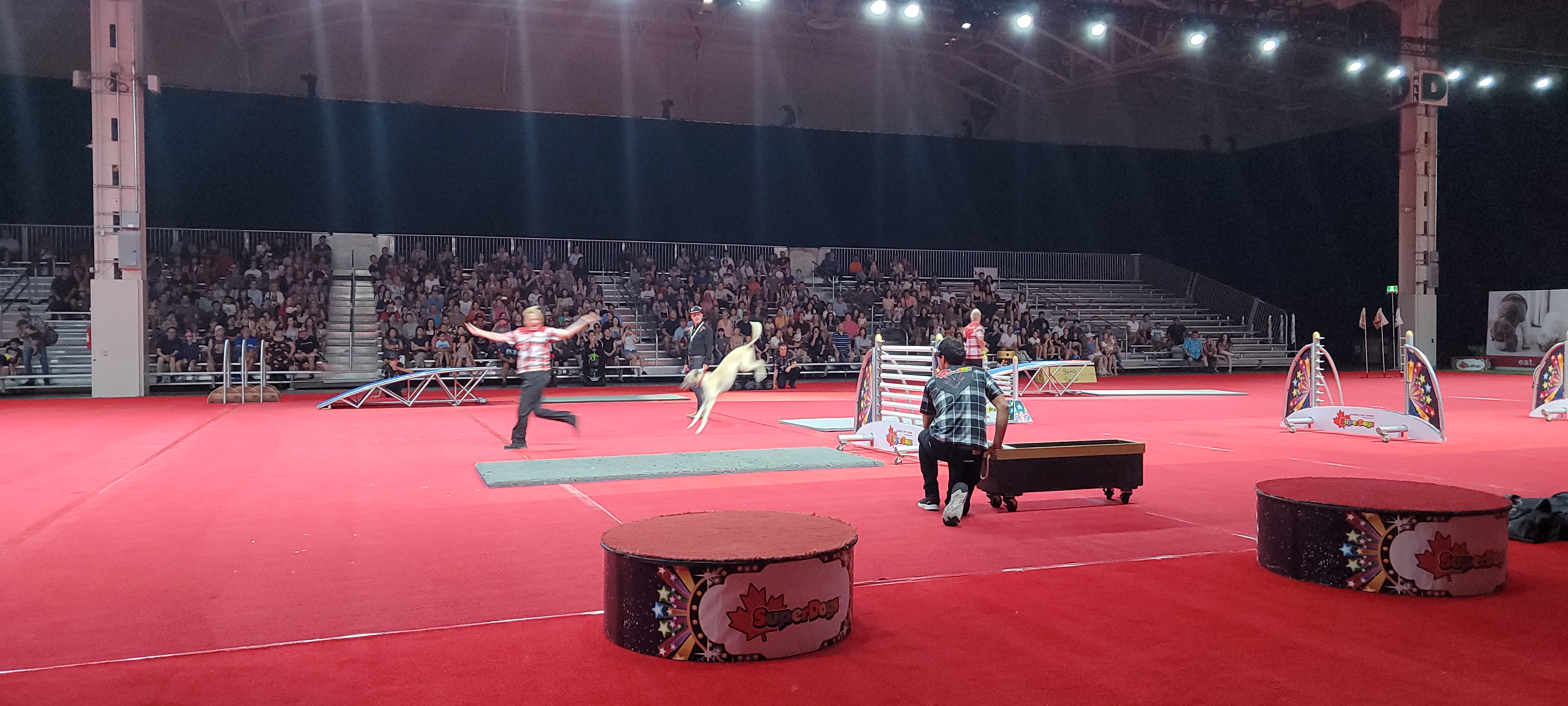 첫 번째로 입장해 좋은 자리를 잡았지만, 공연장이 넓어서 어디서든 잘 보였습니다. 여러 강아지들의 장기와 레이스를 응원하다 보면 시간이 금방 지나고, 마지막에는 무대 중앙으로 나와 강아지들을 직접 만날 수 있습니다.