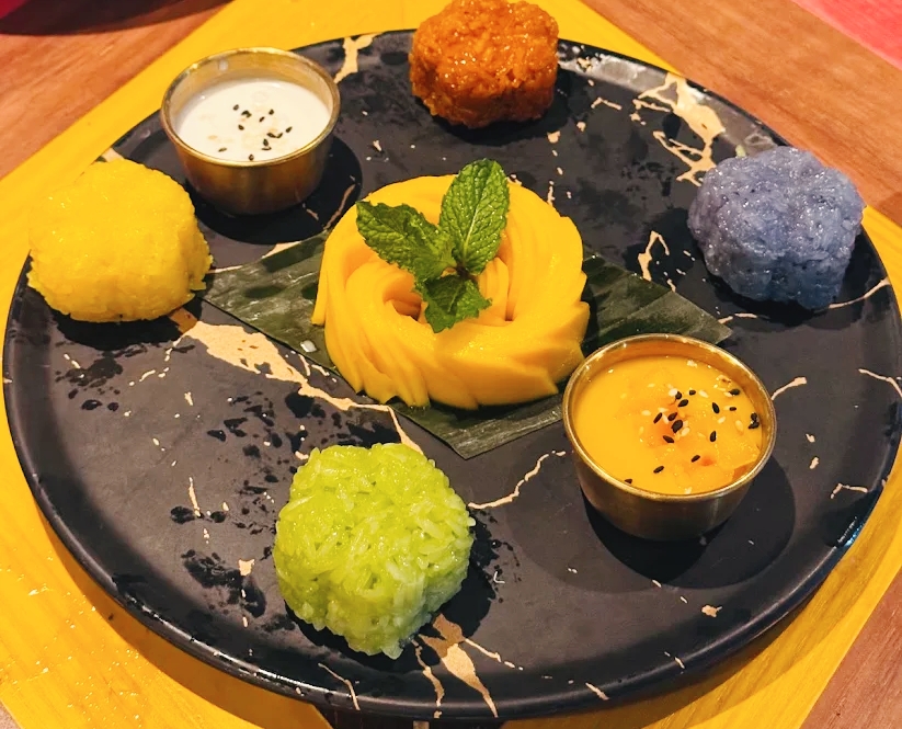 찹쌀밥같이 양념해서 놓고 망고랑 먹는(?) 디저트 같은데 요즘 쇼츠에서 난리인 이 디저트.. 한국 약밥 느낌도 나고.. 다음에 꼭 먹어보고 알려드릴께요~