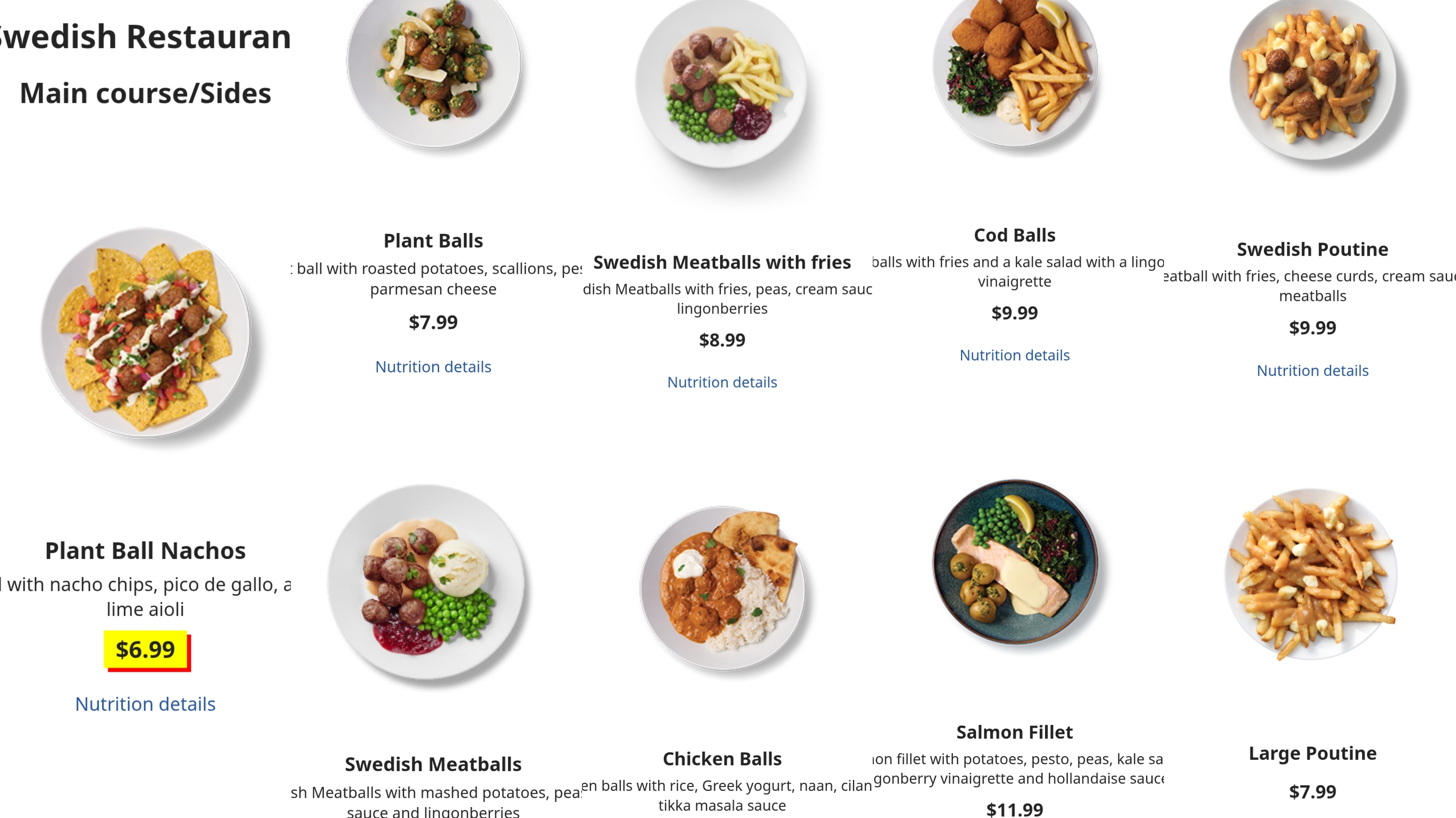 한 1년 넘게 못갔었는데 Fish&Chips가 없어지고 Cod ball이 새로생겼네요. 베지터리언을 위한 Plant Ball도 있고 Salmon Fillet도 있었습니다.