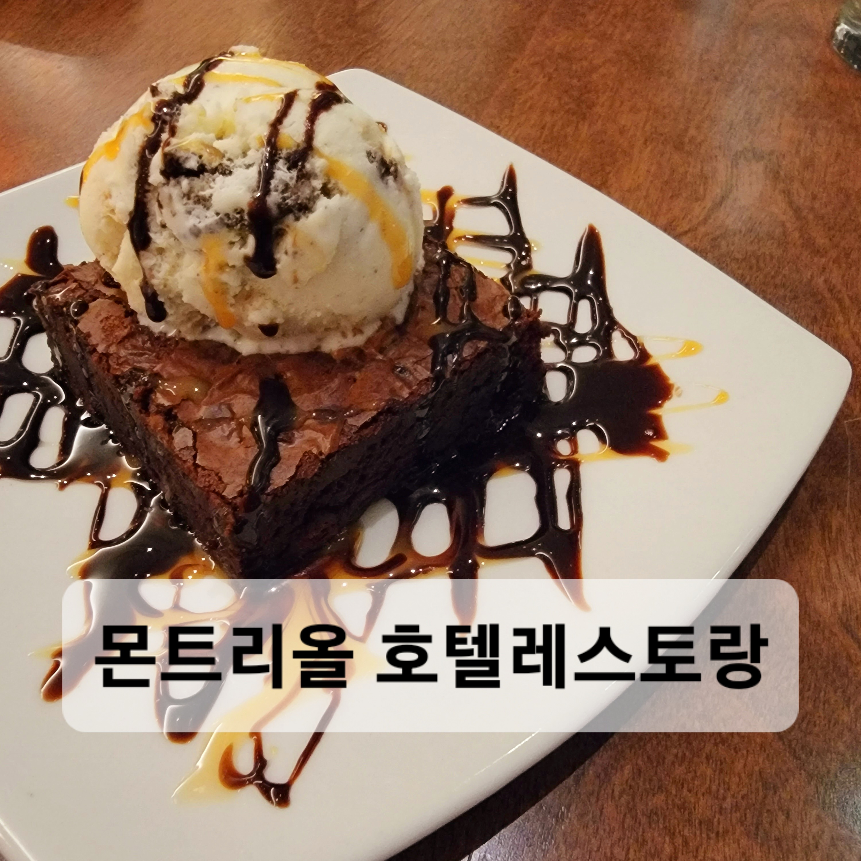 따뜻하게 데워진 브라우니 위에 쿠키도우 아이스크림..ㅜ