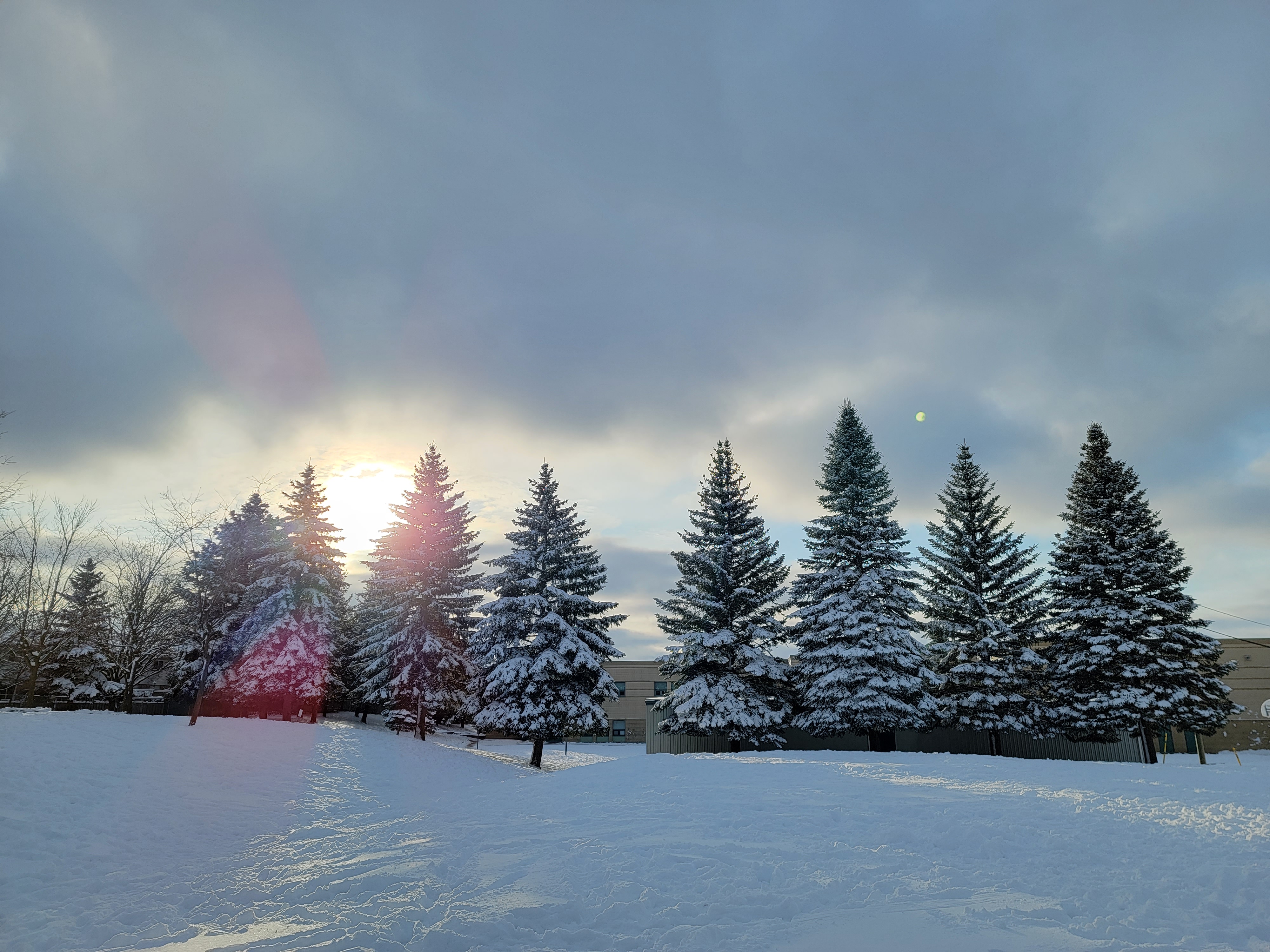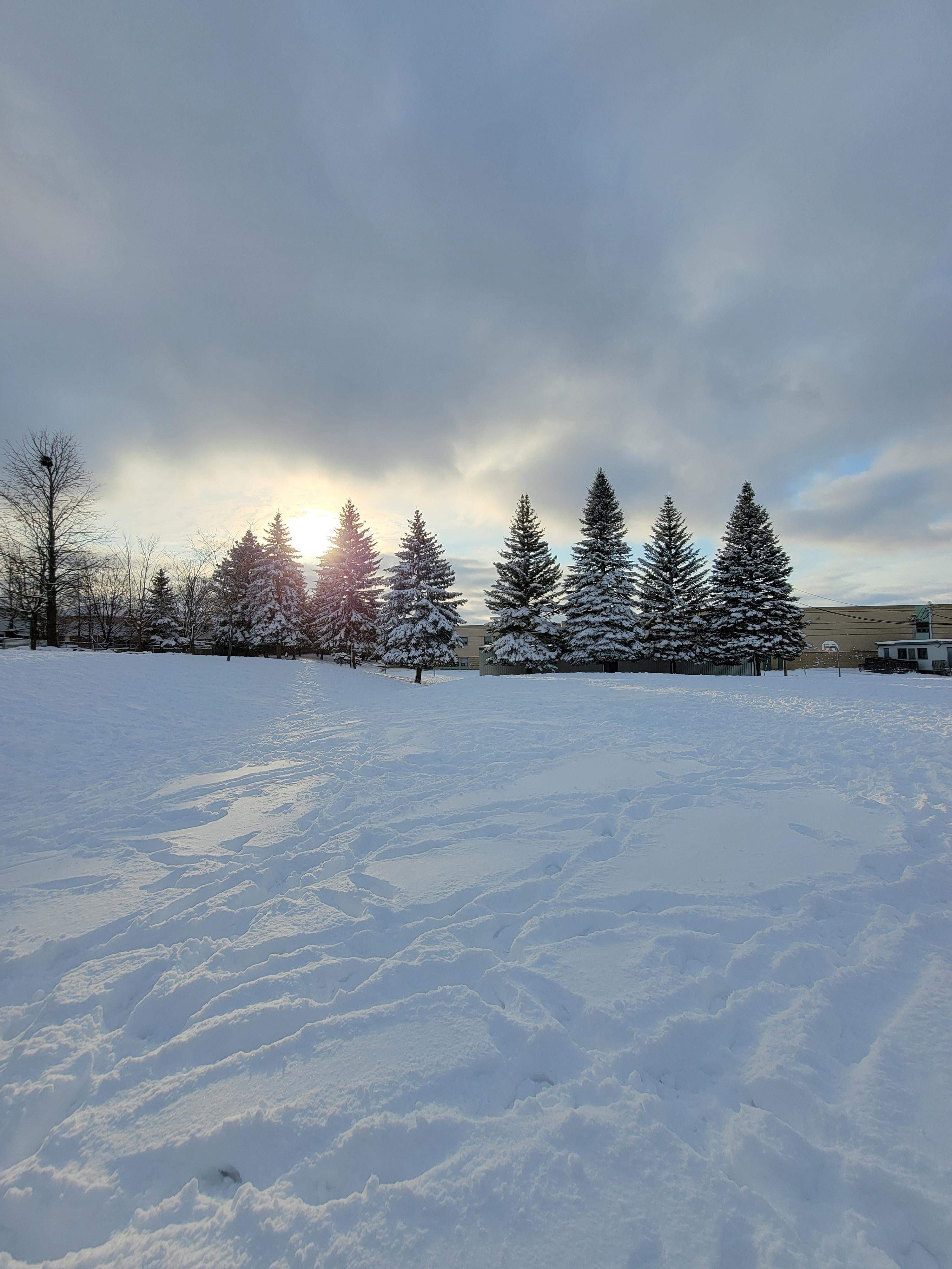 학교에 픽업을 갔더니 눈밭이 되어버린 학교 뒤 공원이 너무 예쁘고