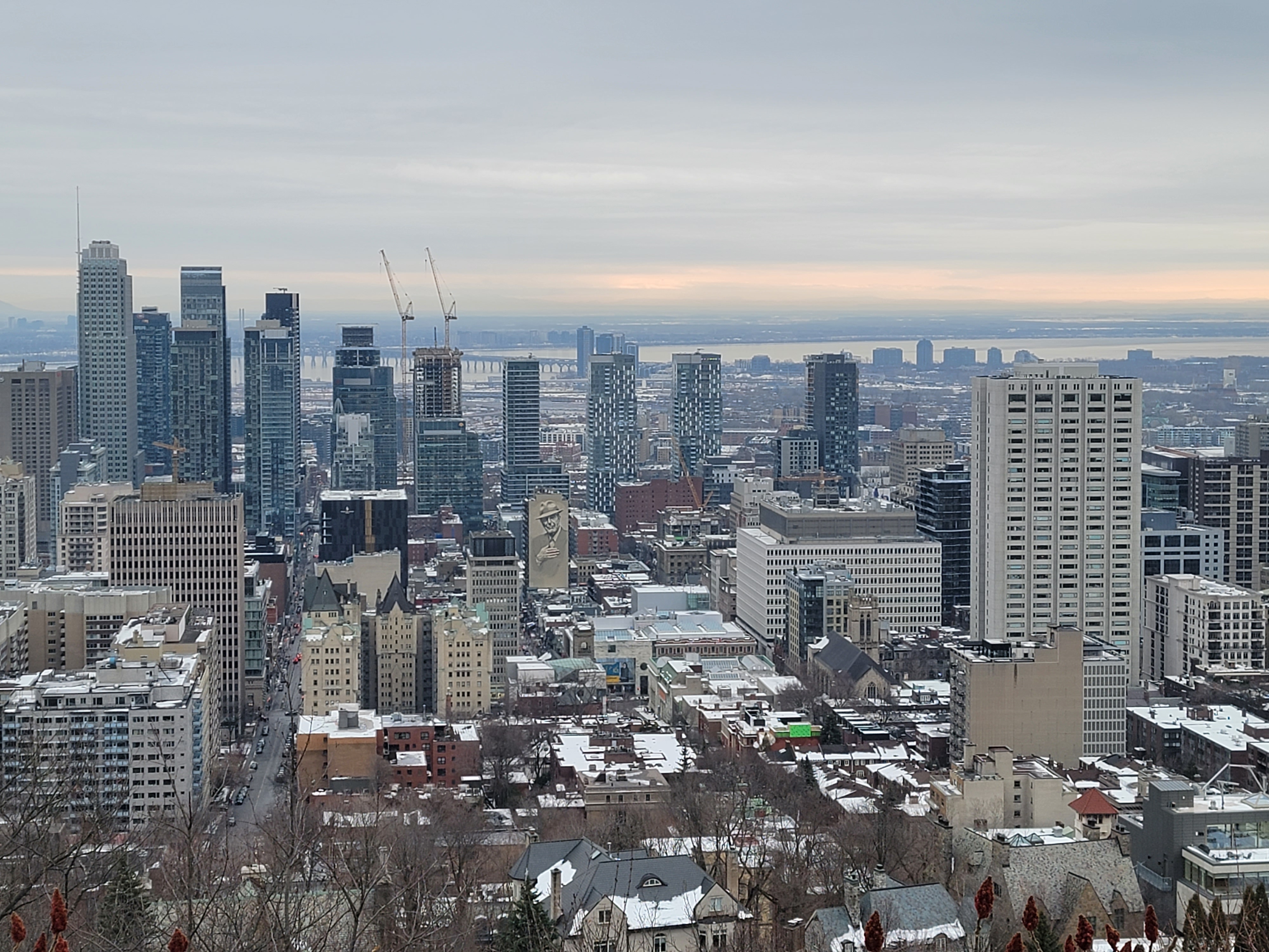 전망대에서 남쪽으로 바라보면 몬트리올 다운타운과