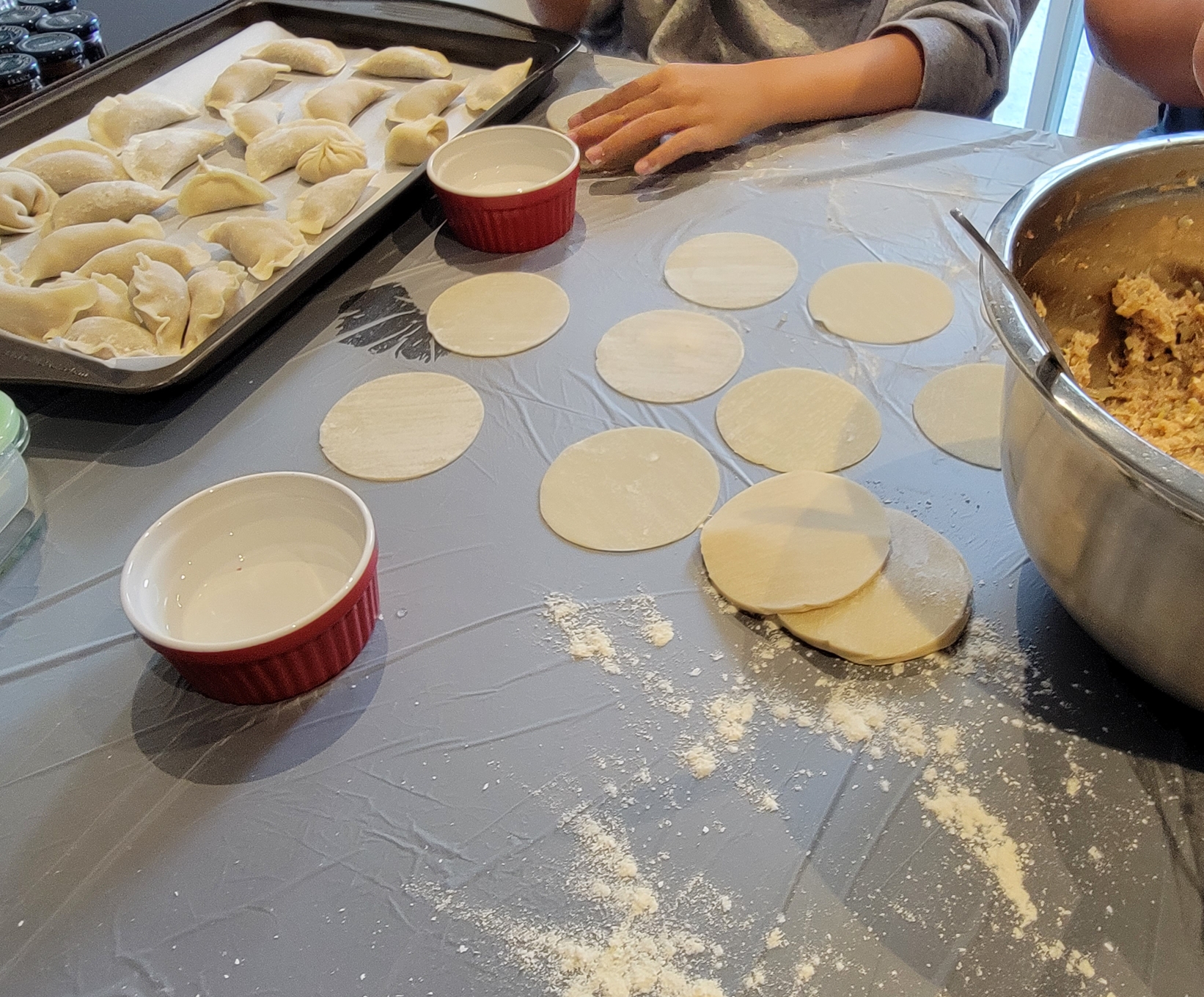 아이들 잡아(?) 놓고 무한 만두 빚기를 시킵니다..^^