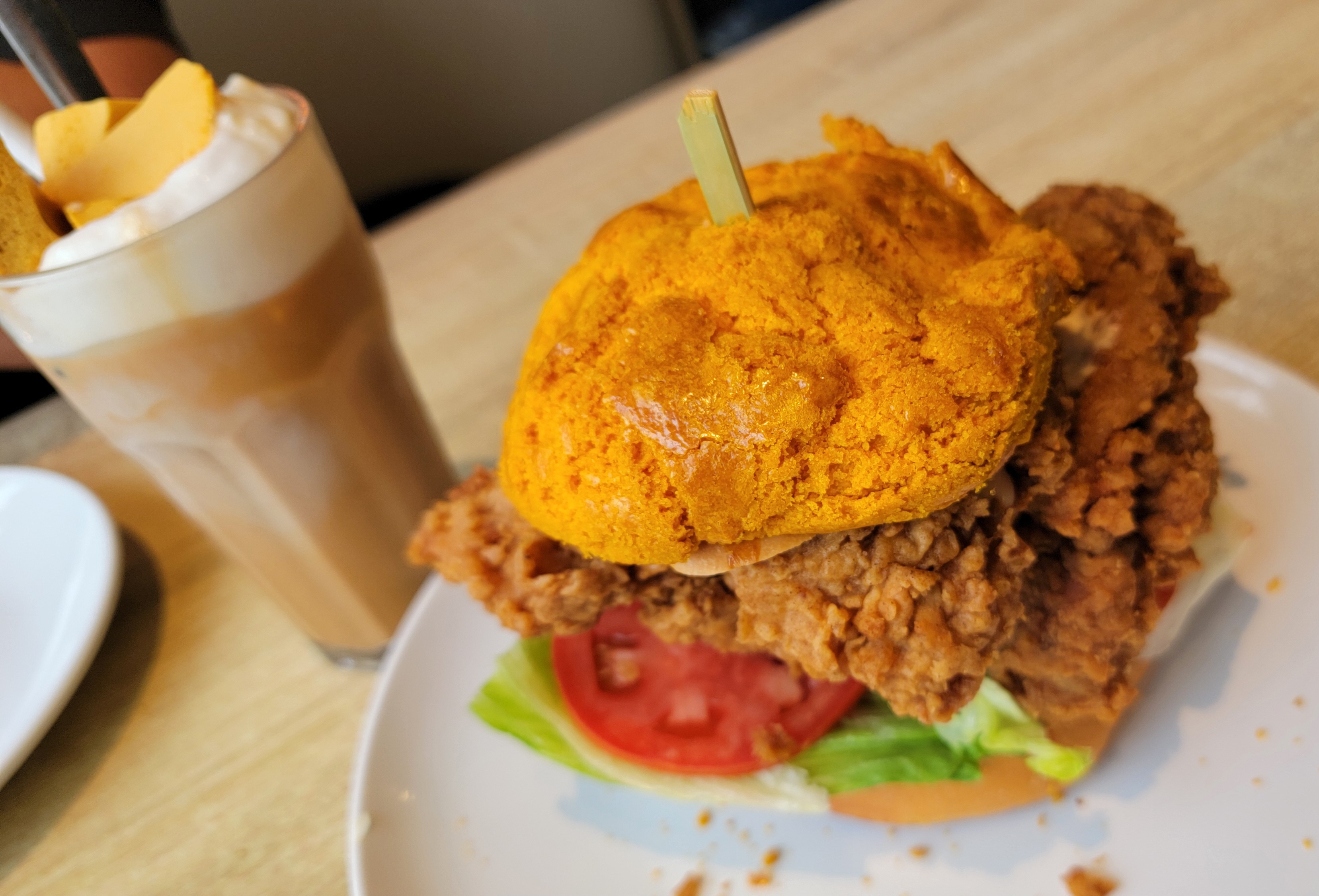 빵도 일반 햄버거 빵이 아니라 파인애플 번(pineapple bun)이라고 우리나라 소보루빵 비슷한 빵이라