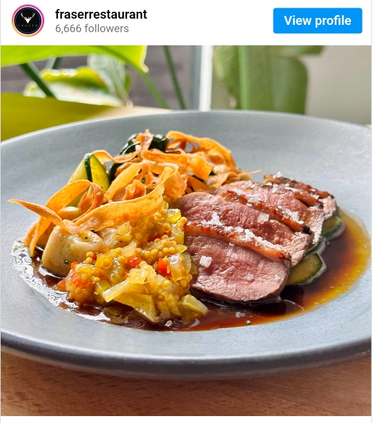 메뉴, 이름, 심지어 장식까지는 상대적으로 소박해 보일 수 있지만, Fraser는 오타와에서 사랑받는 카페입니다. 그들의 레스토랑에서의 계절별 음식은 화려한 록클리프에 위치하고 있지만, 오타와에 근거를 둔 다문화적인 캐나다의 소소한 세계로 느껴집니다. 저녁 메뉴에는 한국식 튀긴 가지, 치킨 사타이 샐러드, 그리고 게 라비올리가 포함되어 있습니다.