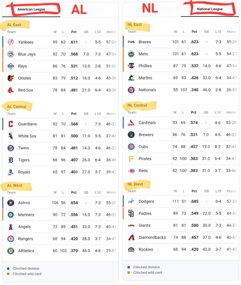 보시다시피 AL, NL 리그 두개에