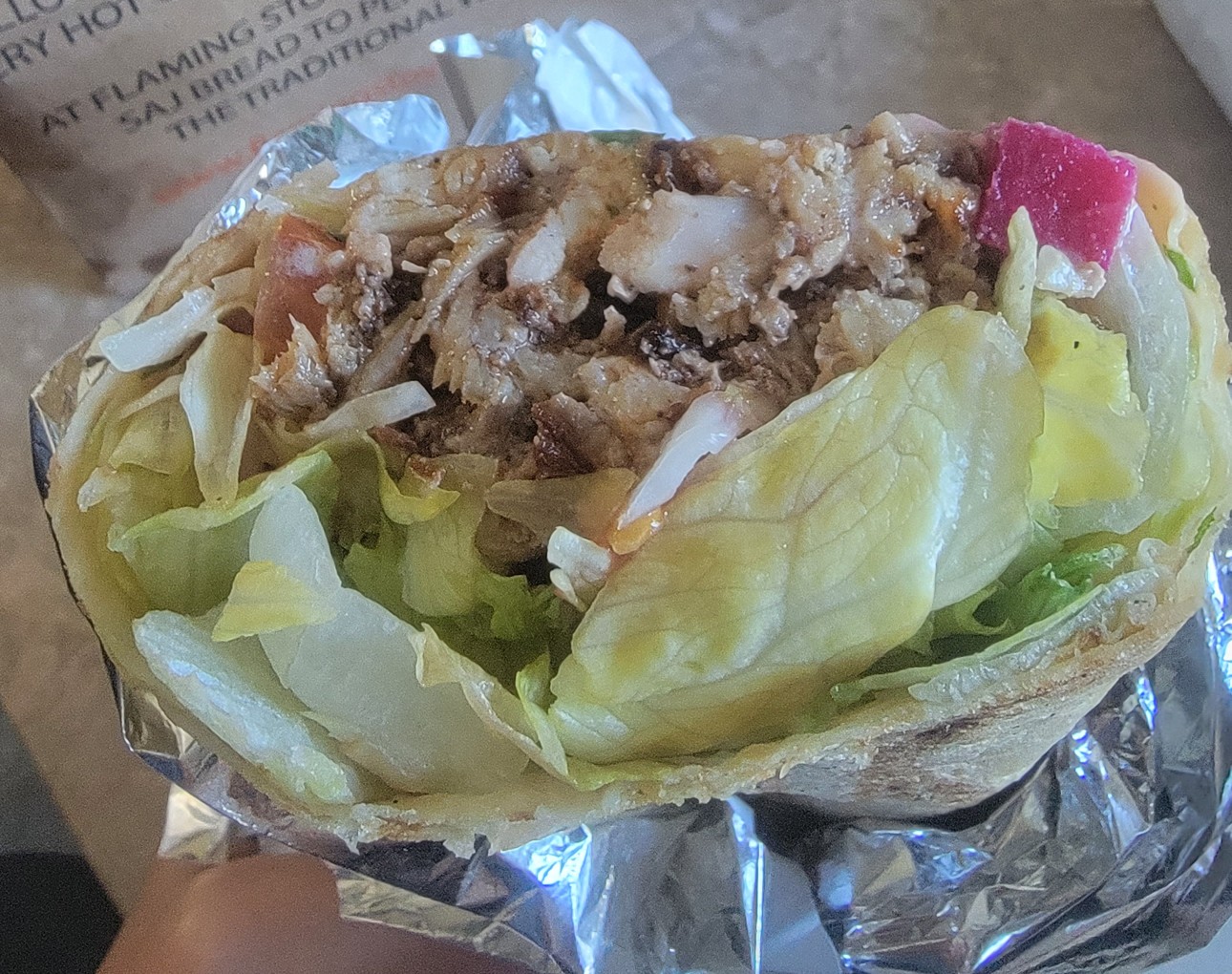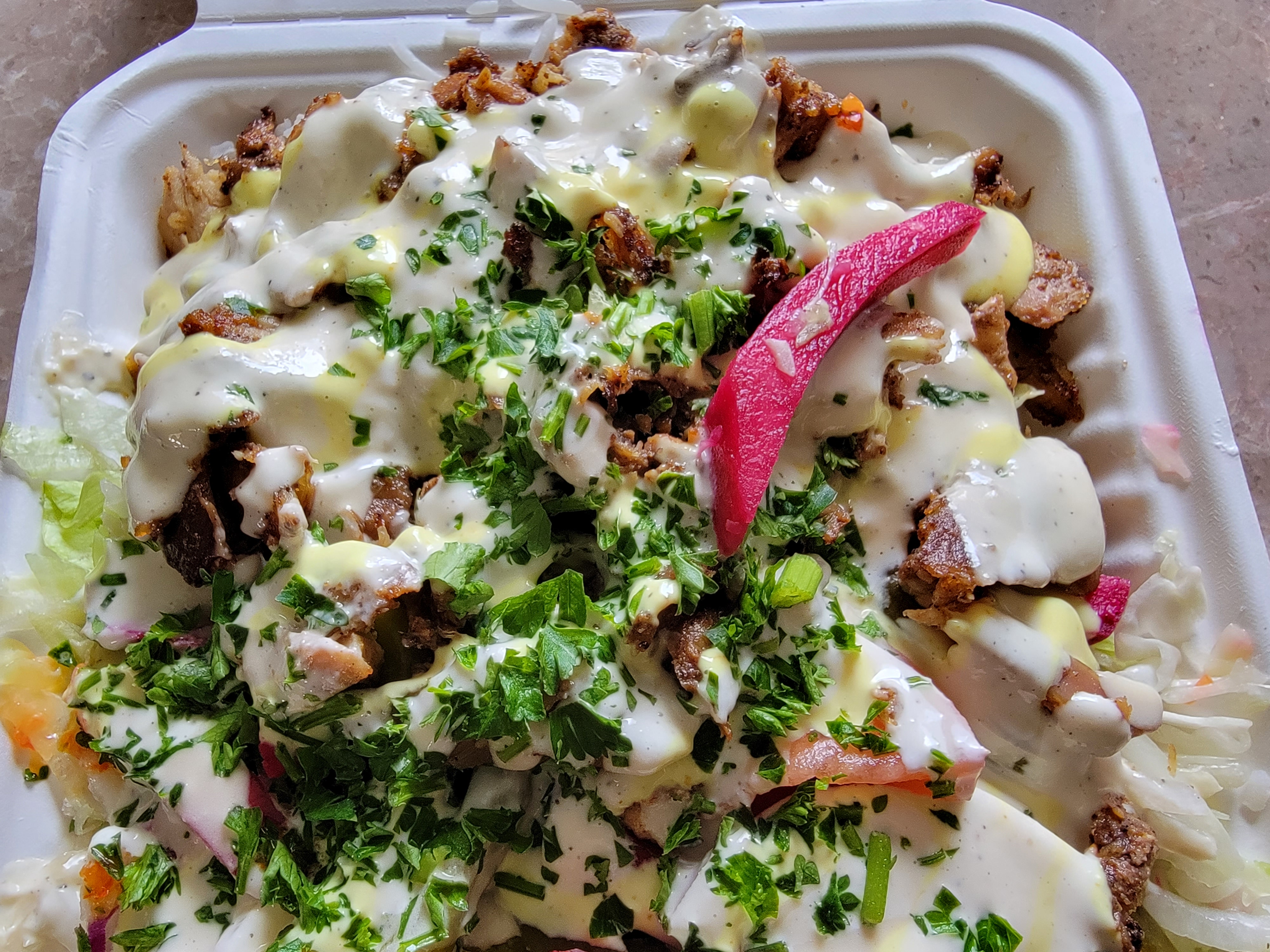 이번에 시킨 치킨 샤와르마 볼 캐나다에서 많이 먹어봤지만 가게들마다 소스 맛이 조금씩 달라서 맛보는 재미가 있다. 이번엔 피클과 고추절임에 파슬리까지 다 뿌림..