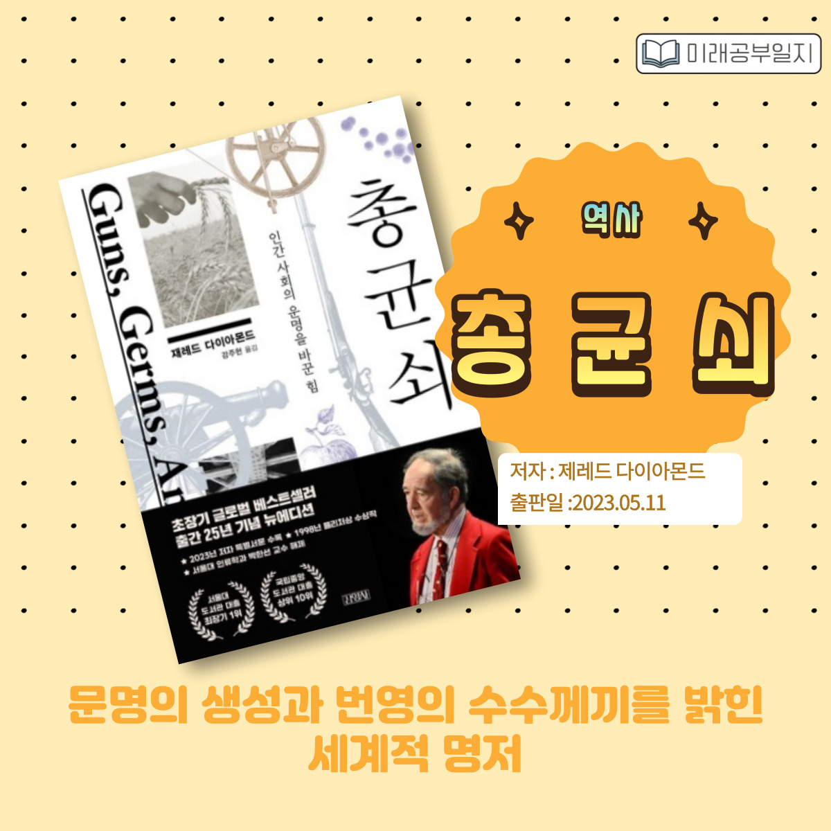 "총, 균, 쇠"는 단순한 역사서가 아니라, 우리 사회의 불평등과 문명의 발전을 이해하는 데 필수적인 책입니다.