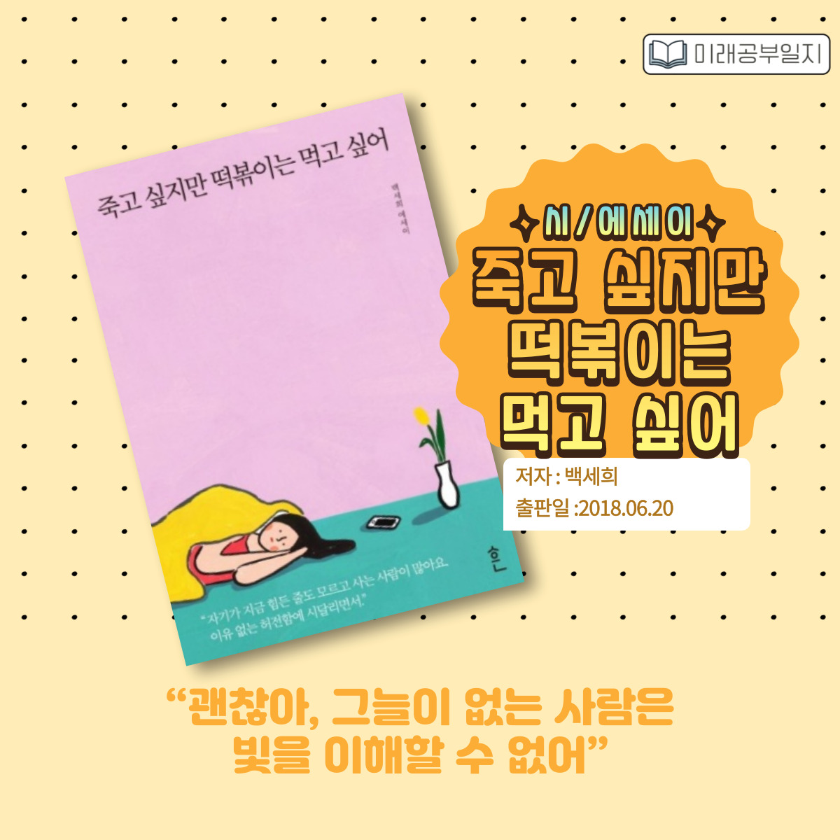 죽음을 입에 올리면서도 떡볶이를 이야기하는 이 모순적인 문장이 이 시대 청춘들의 진짜 마음을 대변했기 때문입니다.