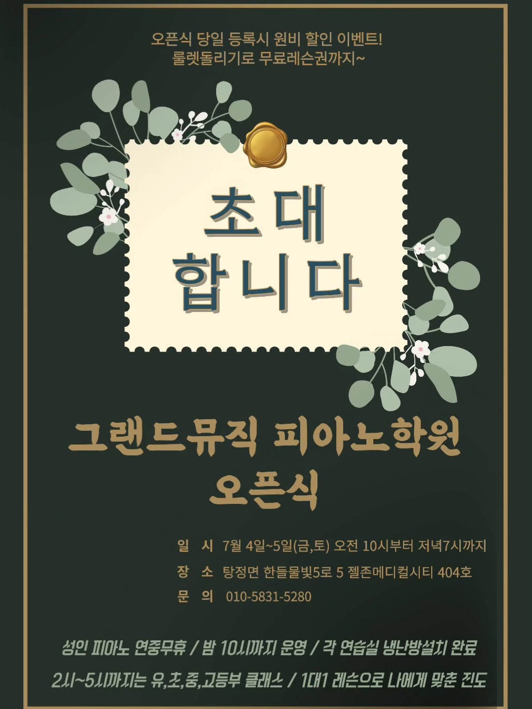 아산 성인피아노 학원 '그랜드뮤직 피아노학원'을 소개합니다.