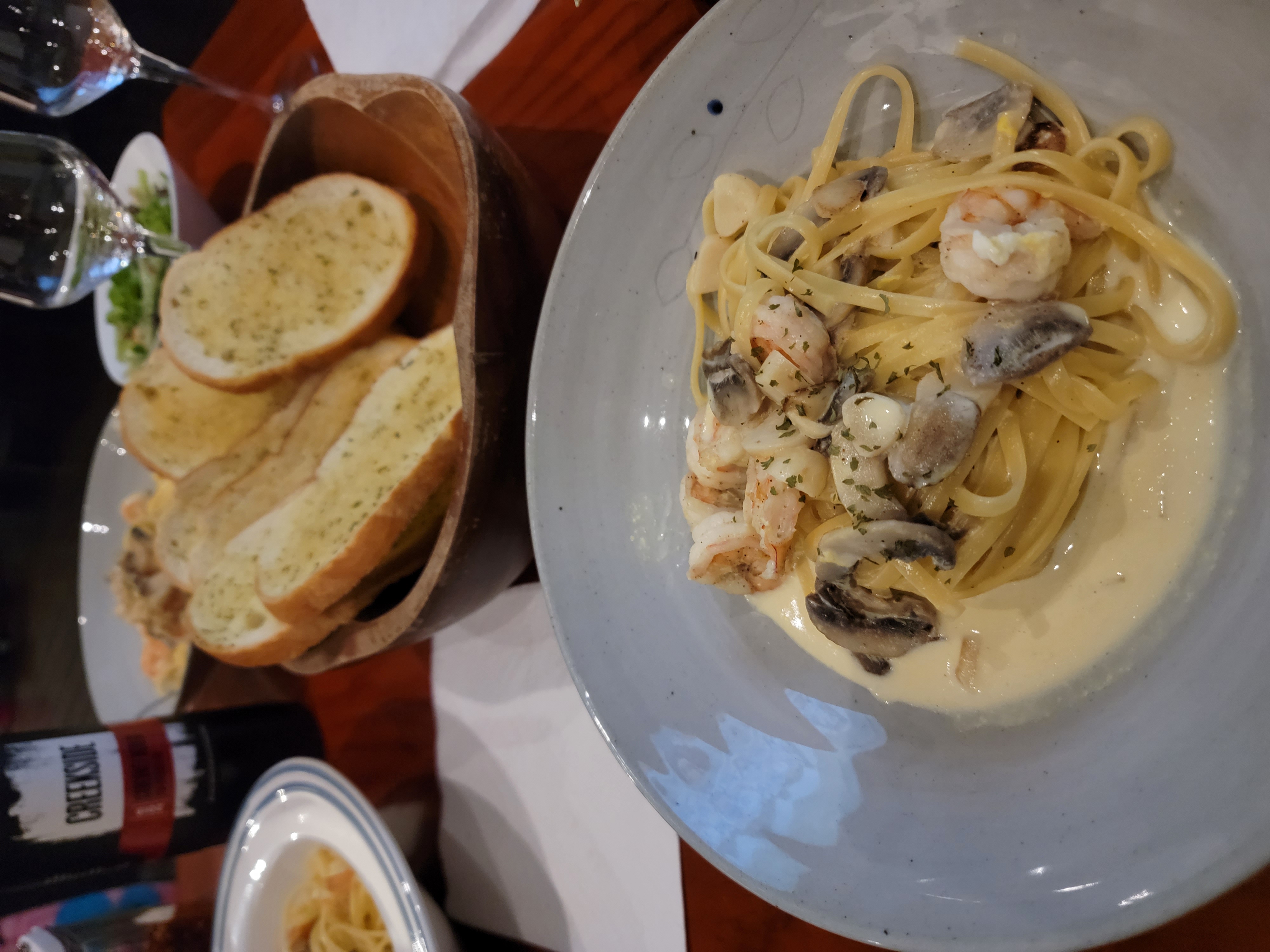 새우버섯 넣고 소스는 생크림+파마산치즈, 계란노른자!
