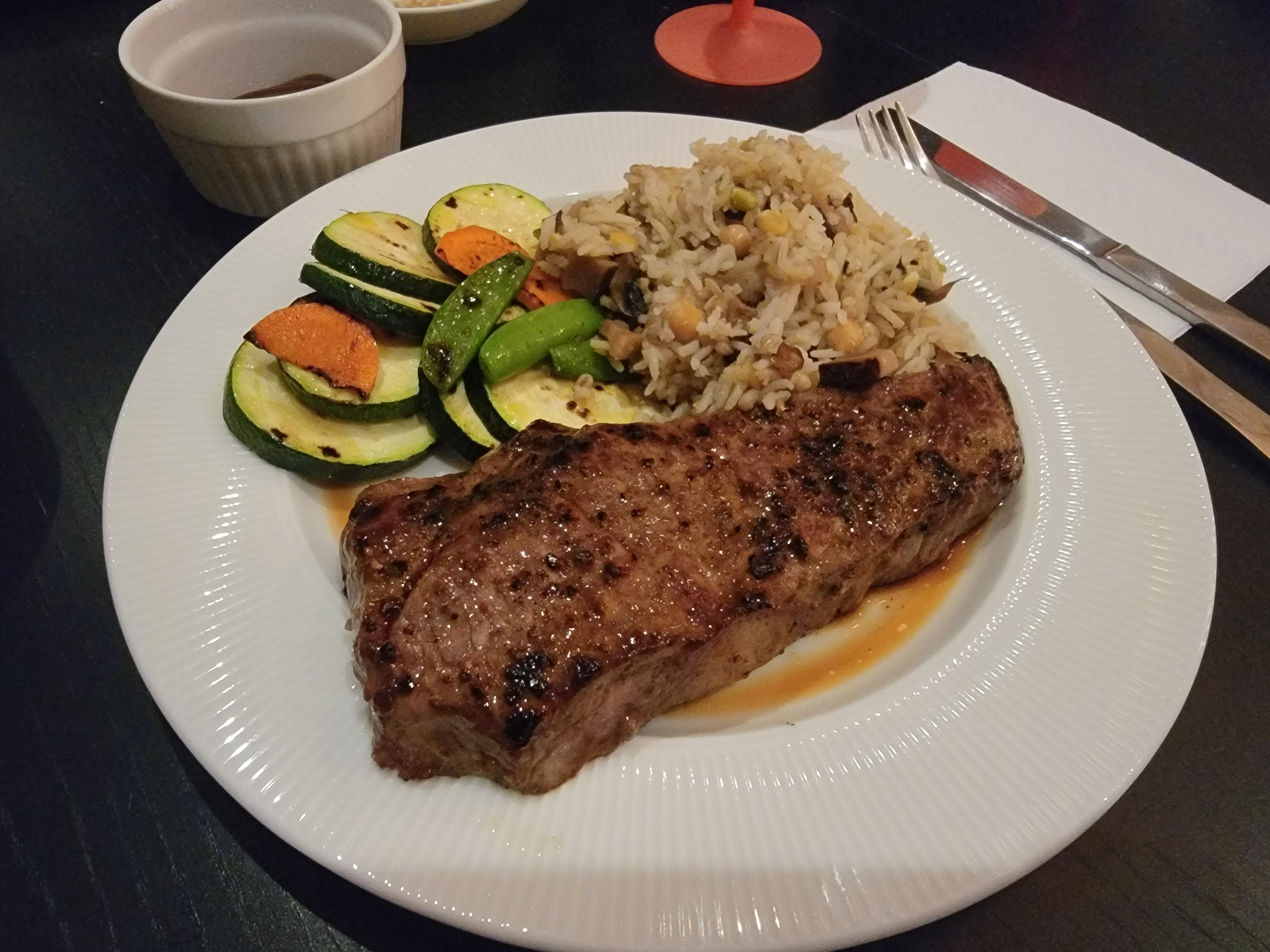 그냥 시중에 파는 스테이크 시즈닝, 소금, 후추 등만 살짝 발라서 굽는 스테이크에, 집에 굴러다니는 아무 채소가 듬성듬성 잘라서 또 스테이크시즈닝이나 소금후추...