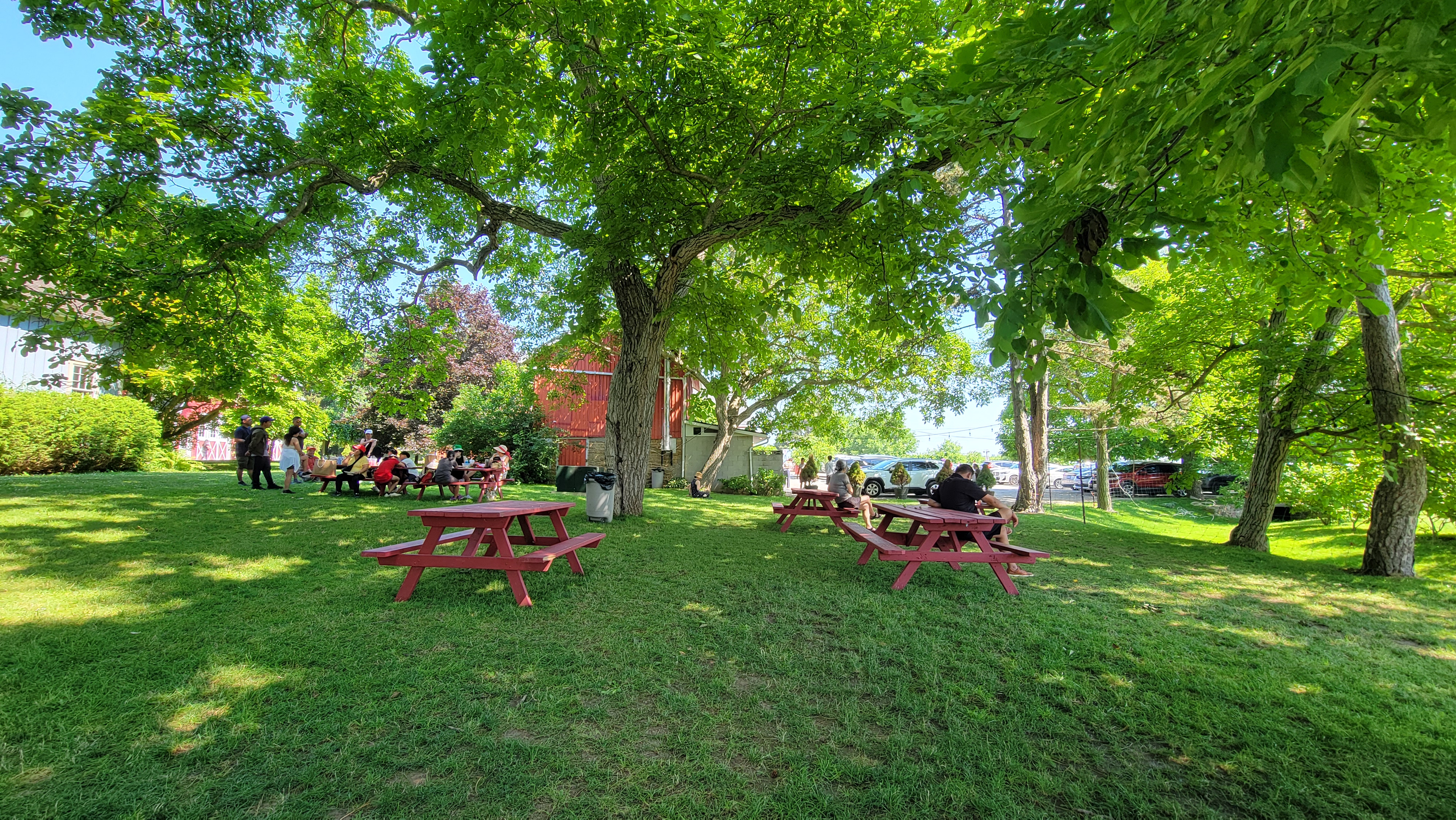 그늘 밑 벤치에는 가족들이 모여 체리를 딴 후에 도시락도 까먹고 하더라구요~ 하지만 저희는 점심 먹을 곳이 따로 있어서..