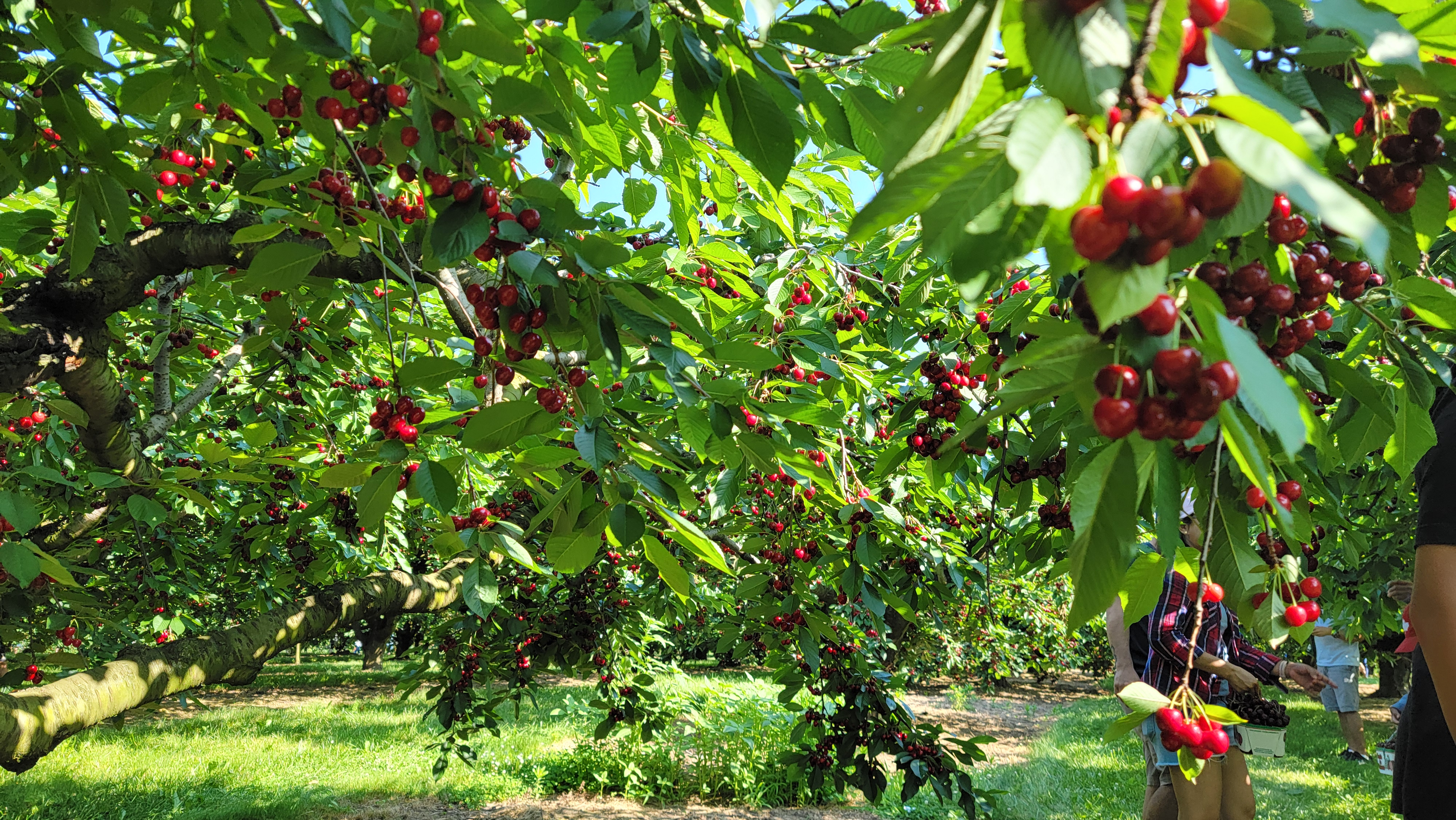 생각보다 체리 나무가 낮아서... 신장 160 이하의 분들은 머리 안 닿고 잘만 지나가지만 더 큰 사람들은 고개 숙이며 다녀야 할 일이 많습니다;; 덕분에 그늘진 체리나무 밑이라 햇빛은 피했지만 목이 좀 불편합니다.