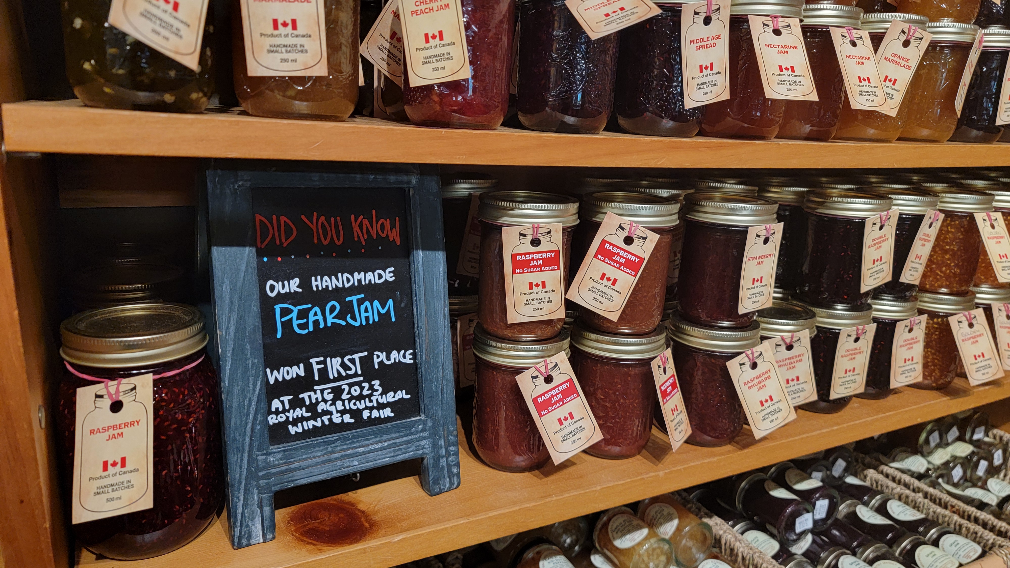 여기 pear jam(배 잼)이 2023년에 무슨 농산물페어에서 1등을 했다네요.. 안 먹어볼 수가 없죠? 사서 먹어보니 안에 잘게 썰린 배가 있어서 씹는 맛이 있더라구요~