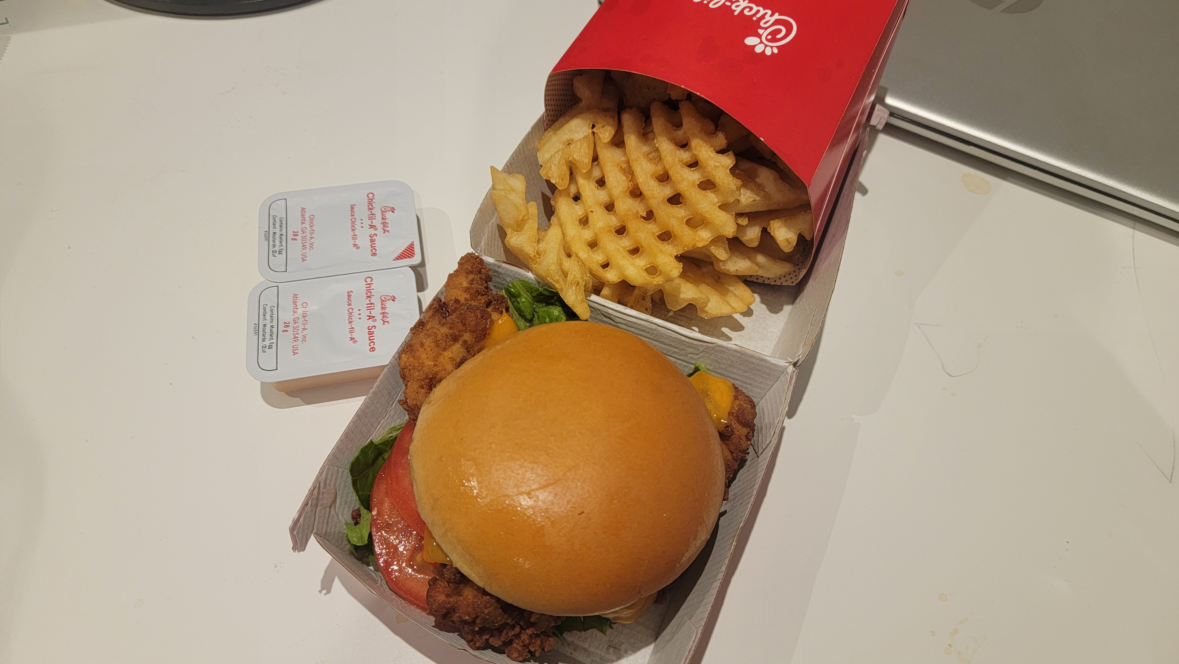 담백하고 바삭한 치킨버거는 Chick-fil-A 추천입니다.