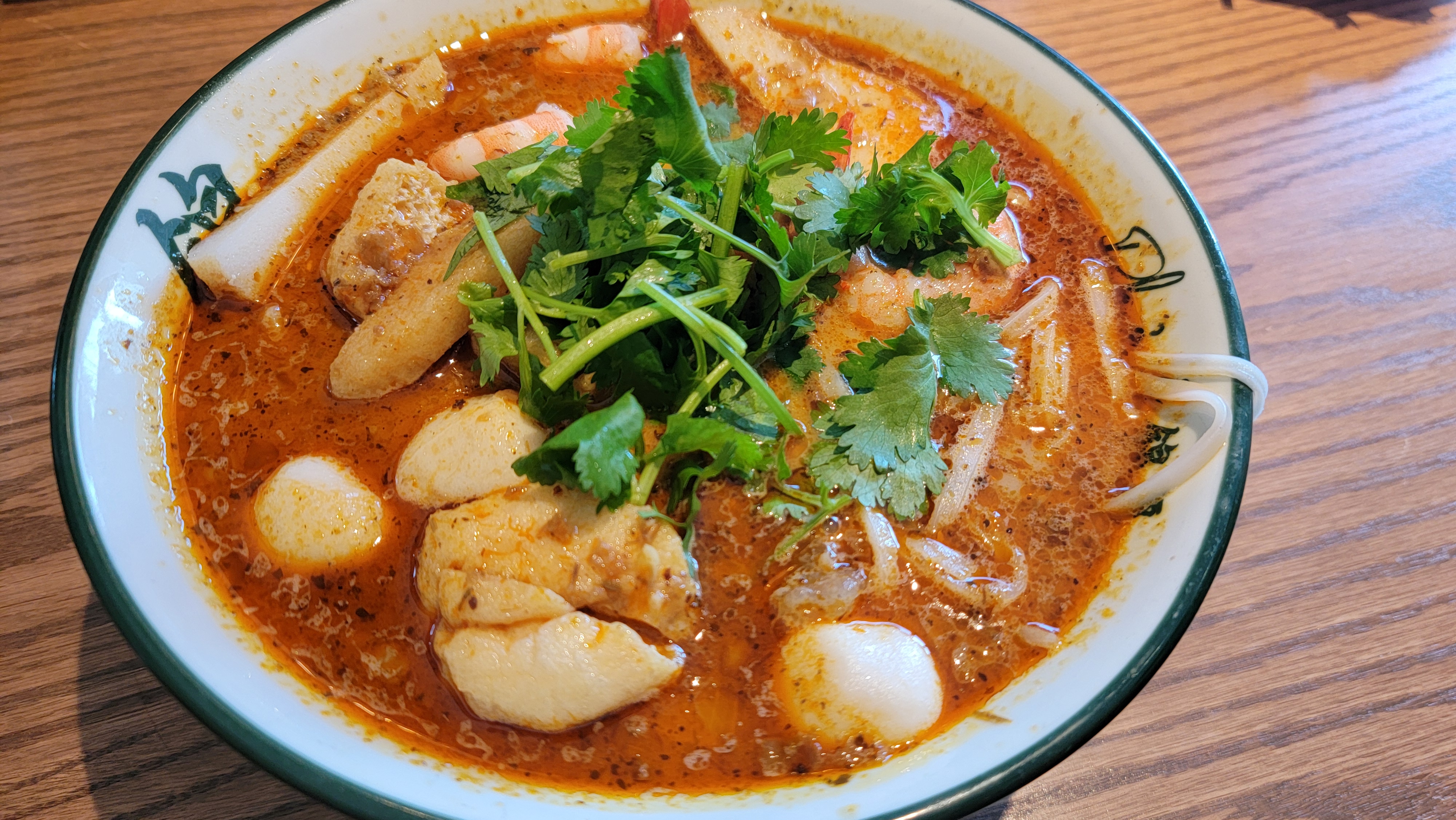 새우 가득한 얇은 피의 완탕과 깊은 맛의 육수, 그리고 쌀국수의 조화가 일품이에요.