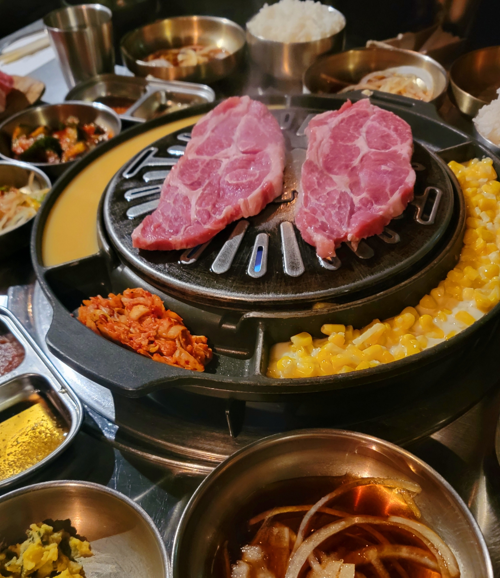 고기 익는 냄새, 각종 반찬들, 테이블 구이의 그 분위기!