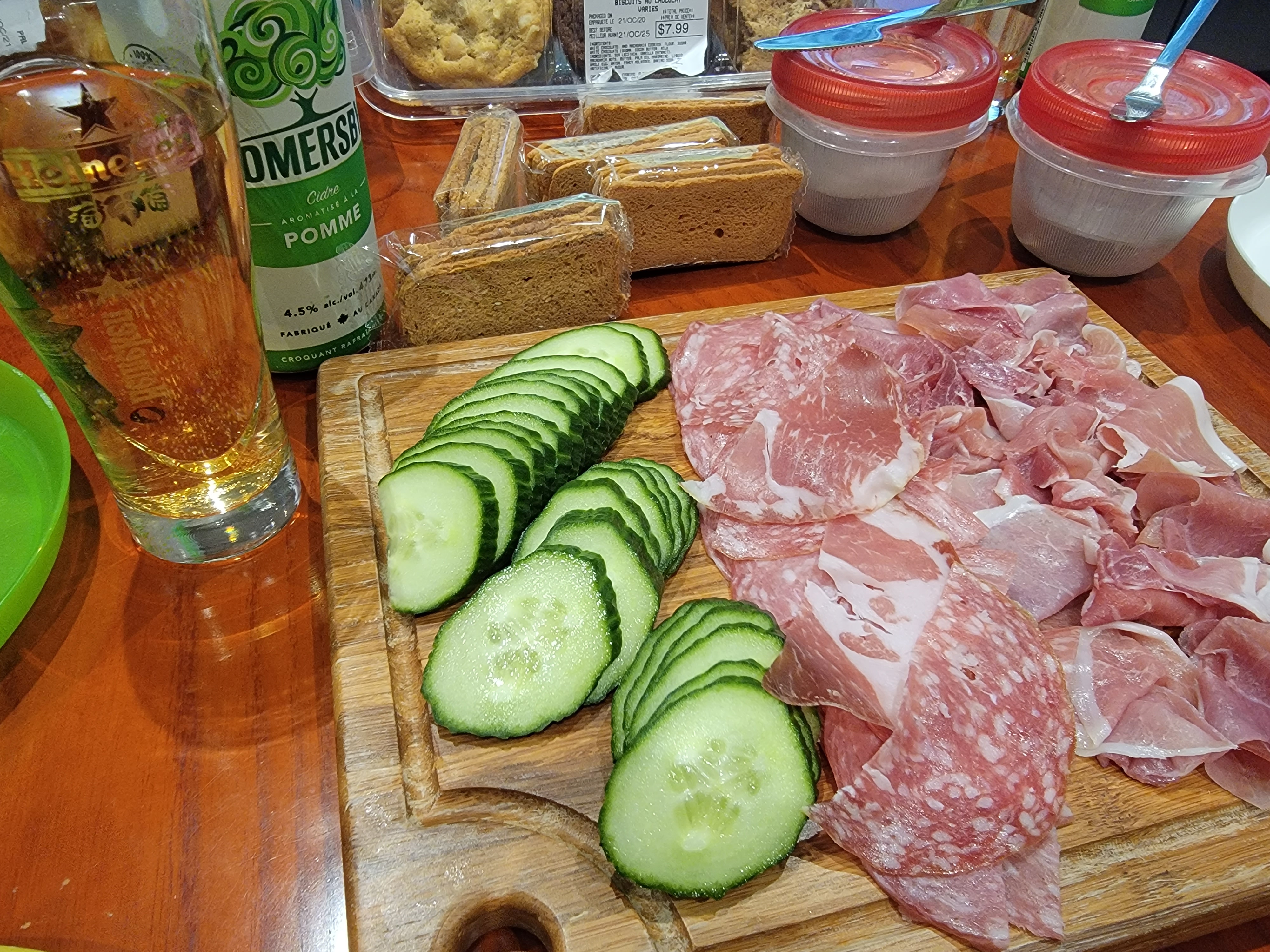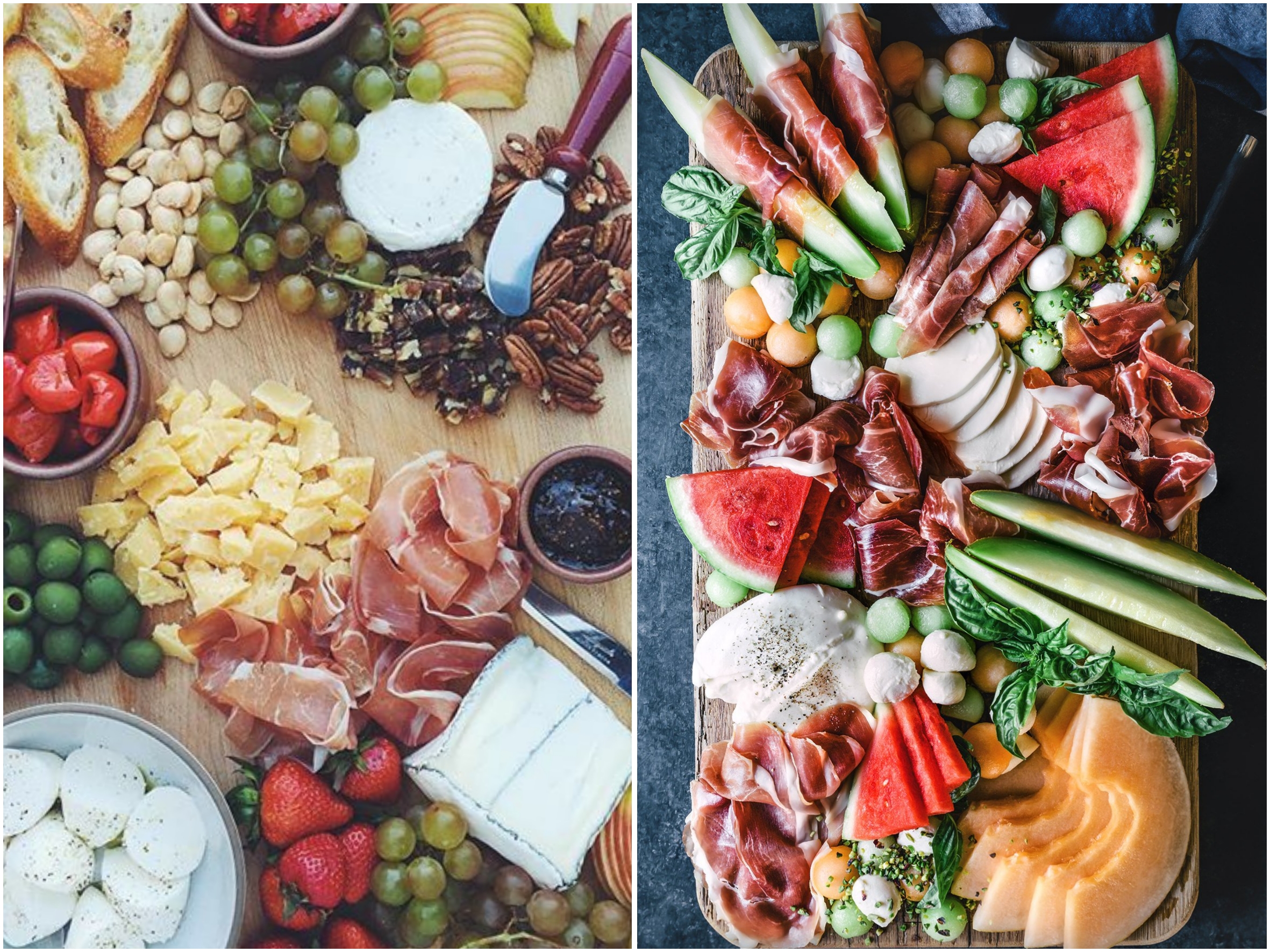 프로슈토, 살라미, 치즈, 올리브, 크래커, 과일 등으로 구성된 차콜보드(안주 플레이트)는 맥주나 와인과 찰떡궁합!