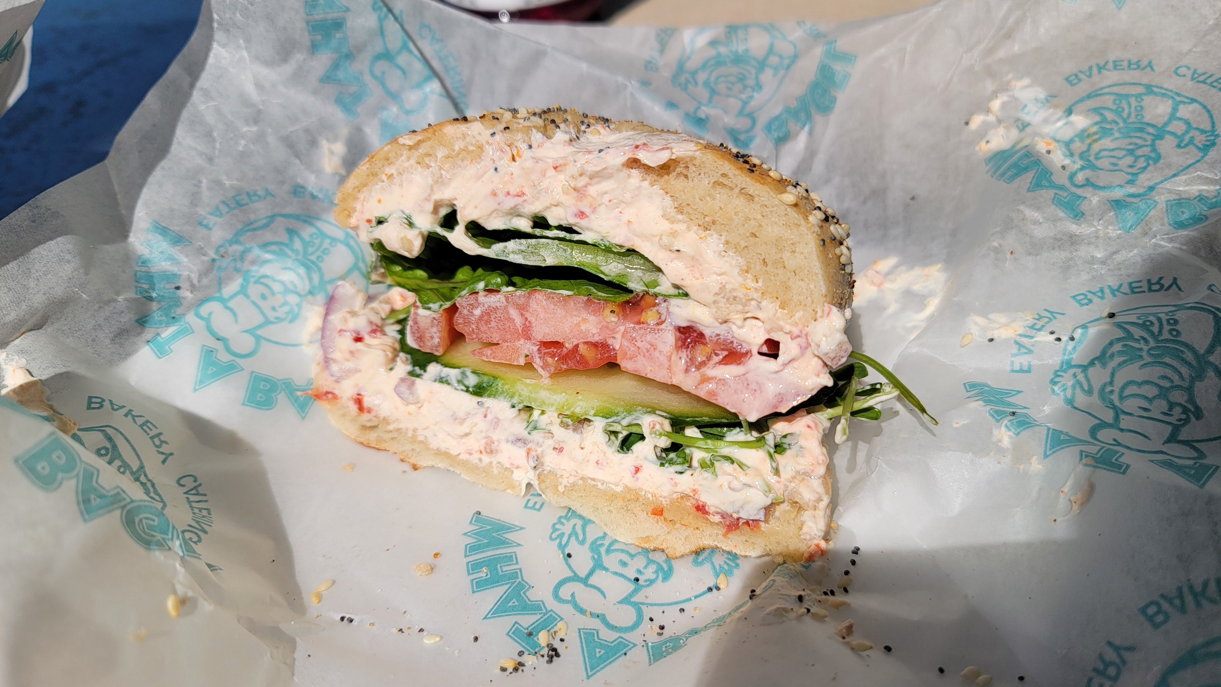 갓 구운 고소한 베이글에 신선한 채소, 참치·계란 샐러드, 다양한 크림치즈를 듬뿍 넣은 샌드위치!