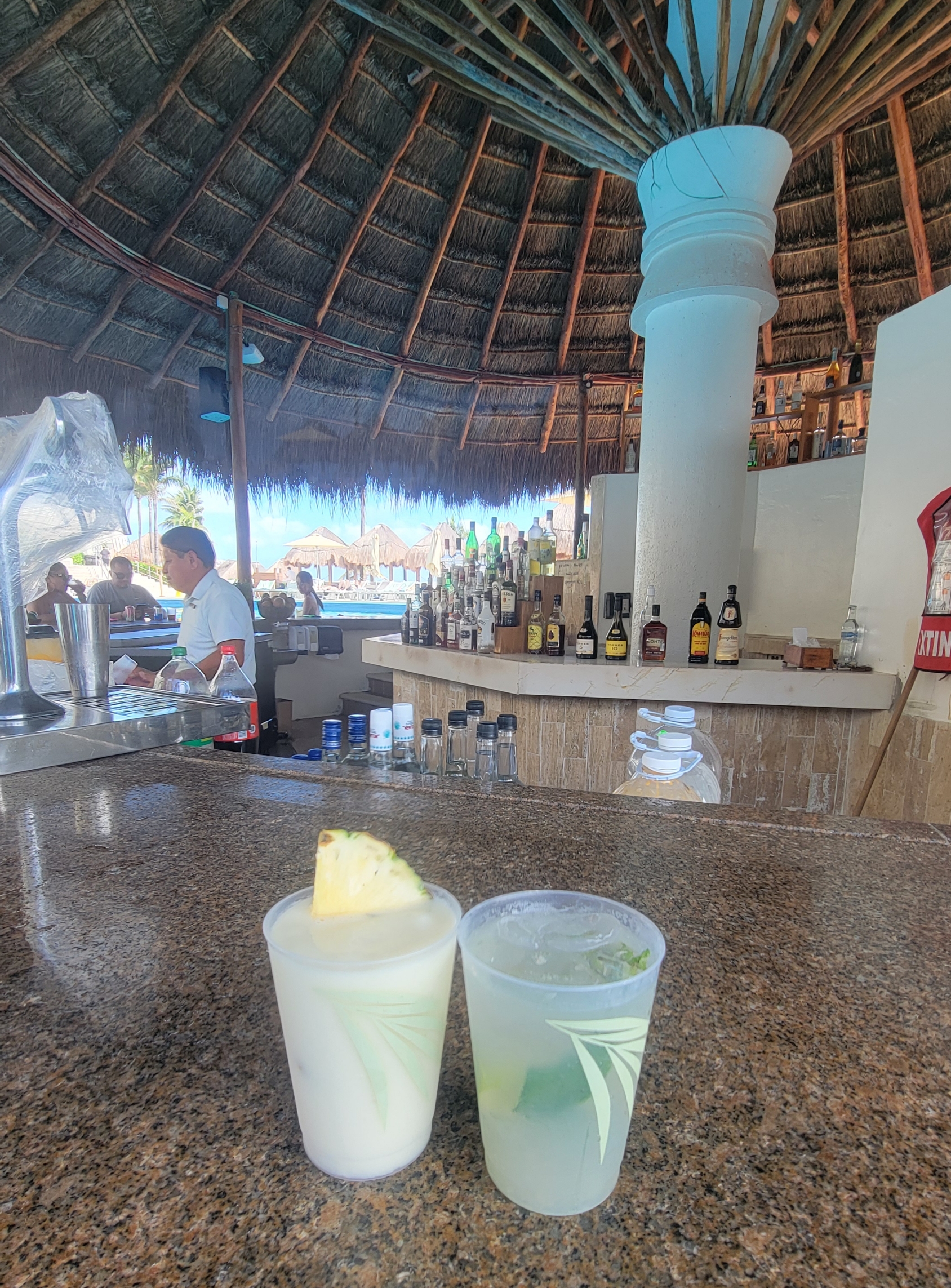 수영장 안에는 바에 붙은 좌석이 있어서 물에 들어가 앉은 채로 칵테일이나 주스를 마실 수 있어요. 주스 종류도 다양해서 아이들이 들락날락하며 열심히 시켜 먹더라고요. 전체적으로 가족 친화적인 분위기의 리조트였습니다.