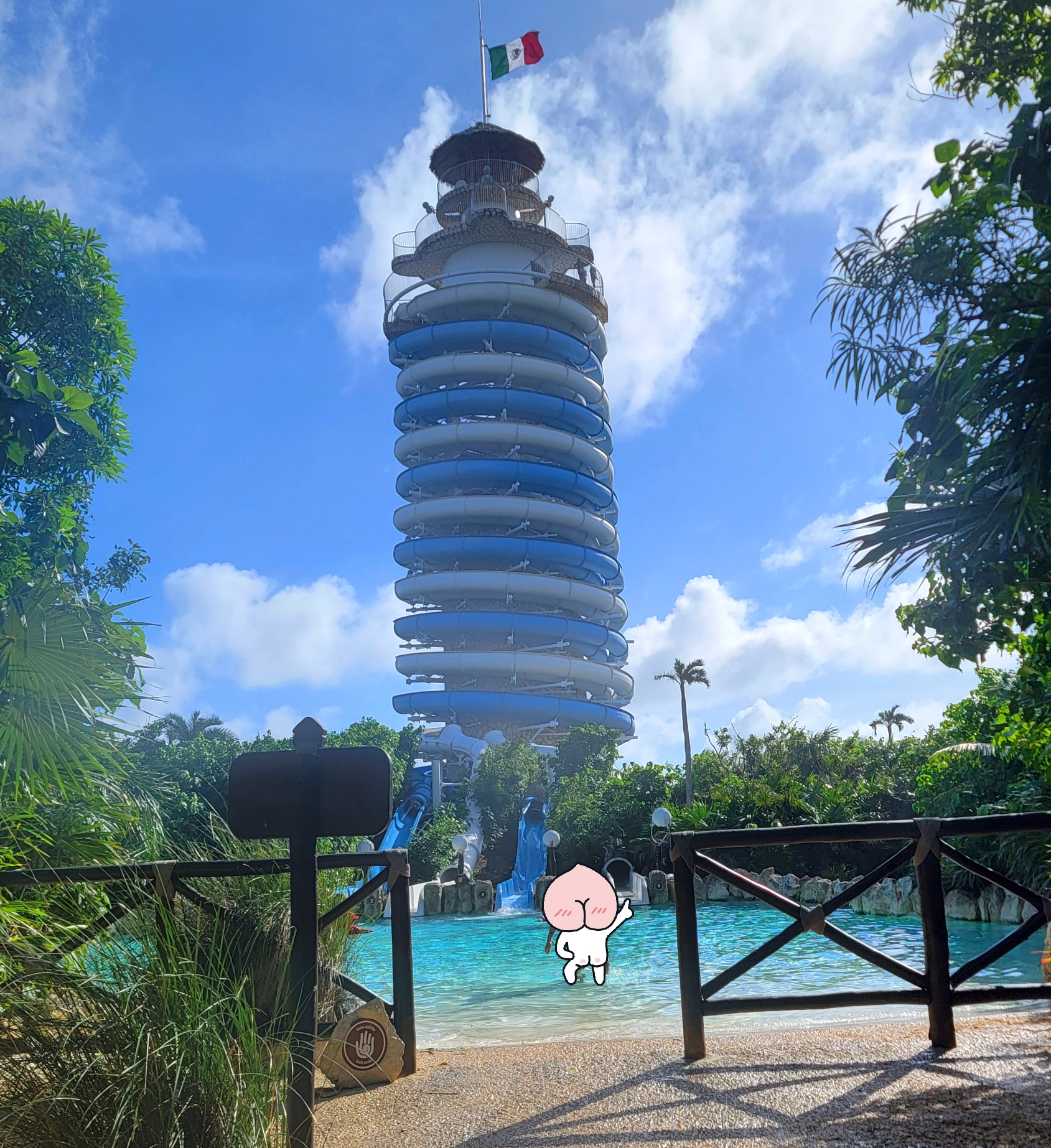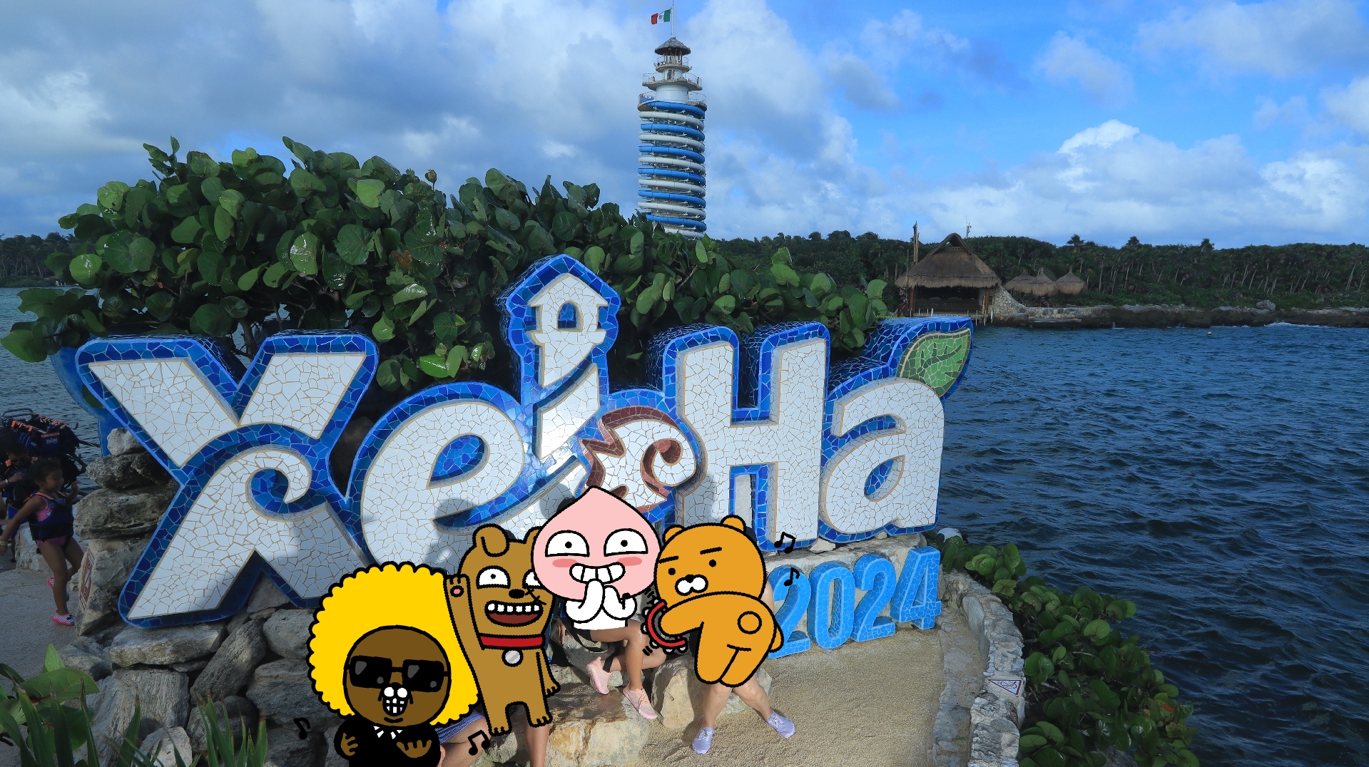 그리고 다음날은 이번 여행의 또 다른 하이라이트! 리조트 밖 액티비티를 위해 일찍 나섰습니다. 저희가 묵었던 리조트는 워터파크 같은 시설은 없어서, 칸쿤에서 가장 유명한 자연 워터파크 ‘셀하(Xelha)’로 떠나기로 했죠. 원래는 마야 문명의 휴양지였던 곳이라는데, 지금은 대형 올인클루시브 워터파크로 운영되고 있어요. 운영사는 멕시코의 유명 관광그룹 Xcaret(엑스칼렛)!