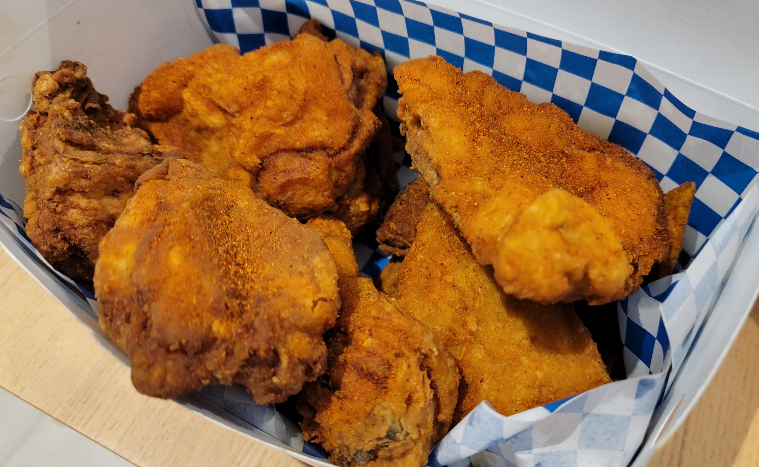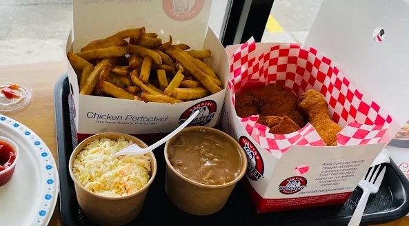 ‘브로스티드(Broasted)’라는 단어가 조금 생소할 수 있는데, 이건 프라이드 치킨과 로스트 치킨의 장점을 합친 조리법입니다. 압력 프라이 방식으로 짧은 시간 안에 바삭함과 촉촉함을 동시에 잡은 게 특징이죠. 기름은 속까지 스며들지 않으면서 겉은 황금빛 바삭, 속살은 미친 듯이 부드럽습니다.