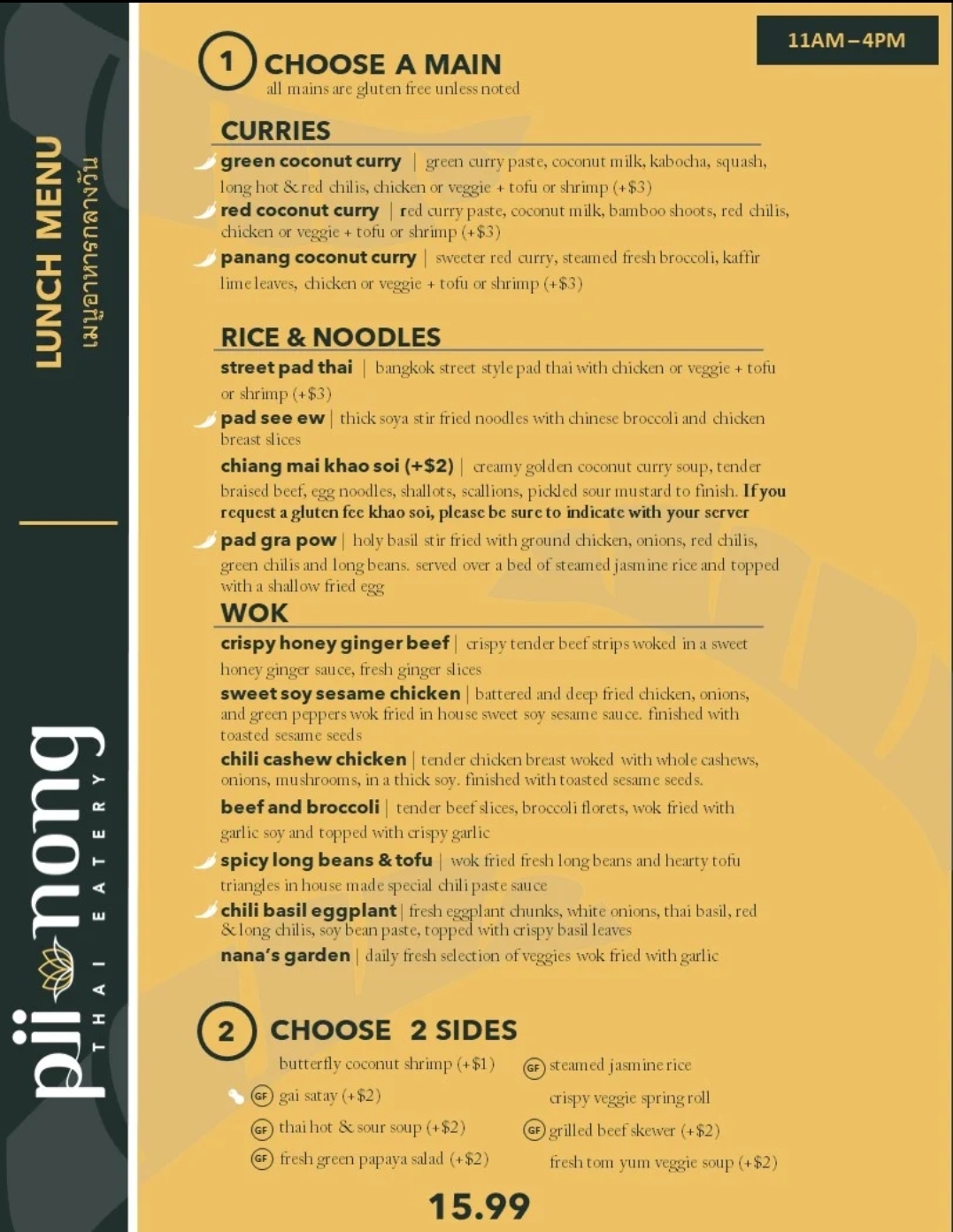 아래 2본 사이드메뉴에서 2개를 고르는 런치메뉴가 15.99