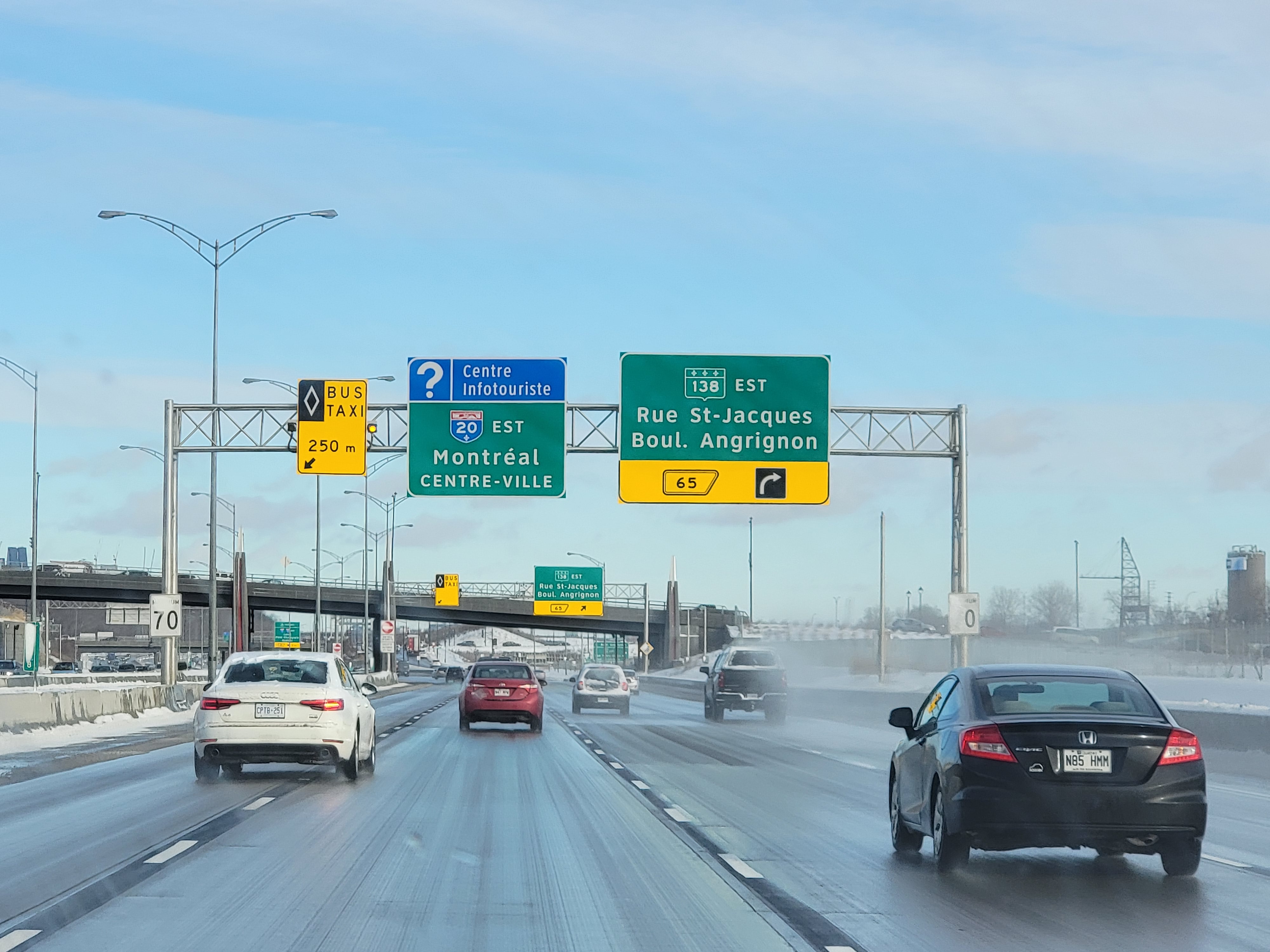 도로 이정표에서 불어만 나오는 퀘벡주에 도착하게 됩니다