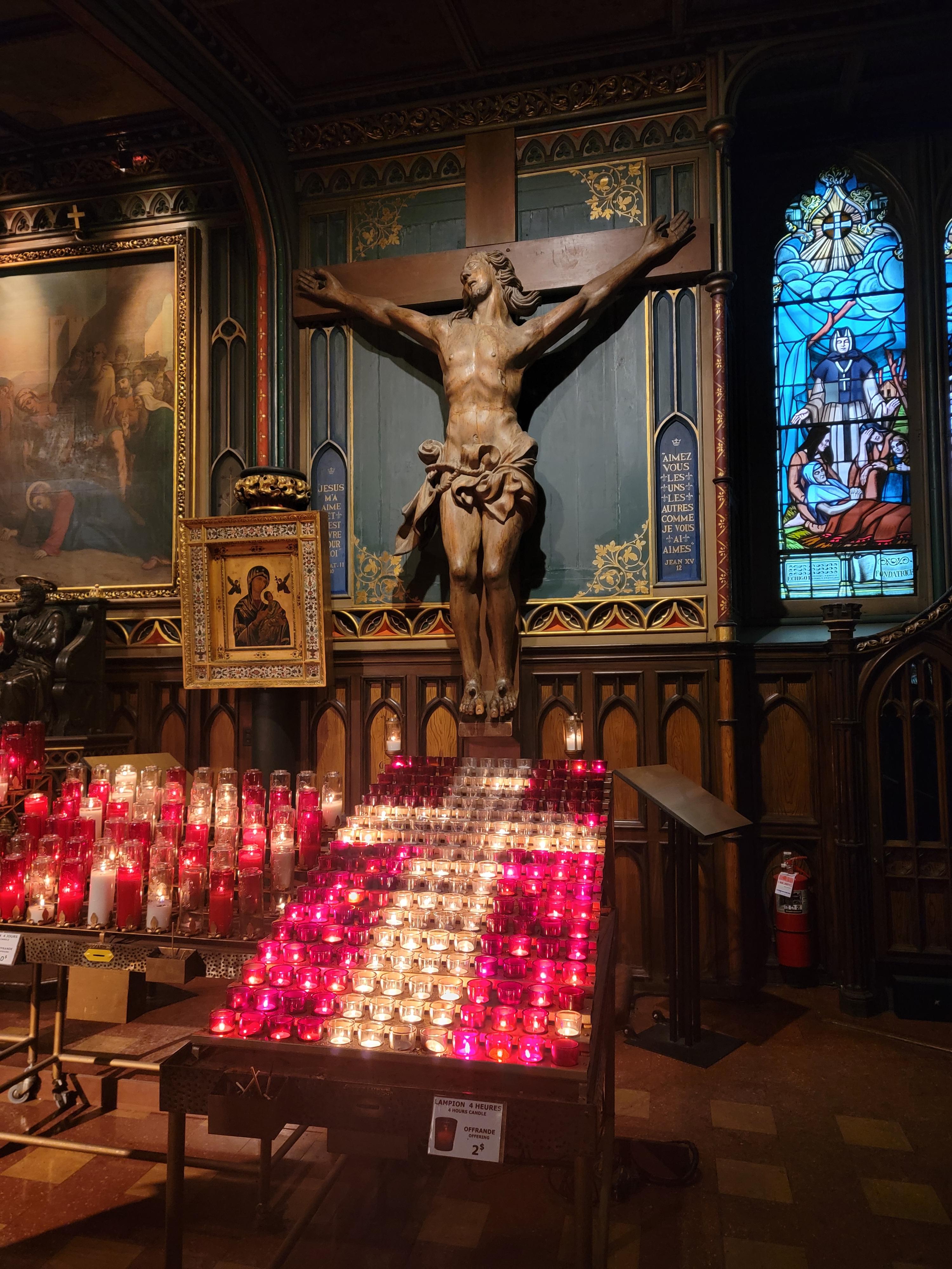 성당의 양 옆은 십자가와 기도를 위한 촛불