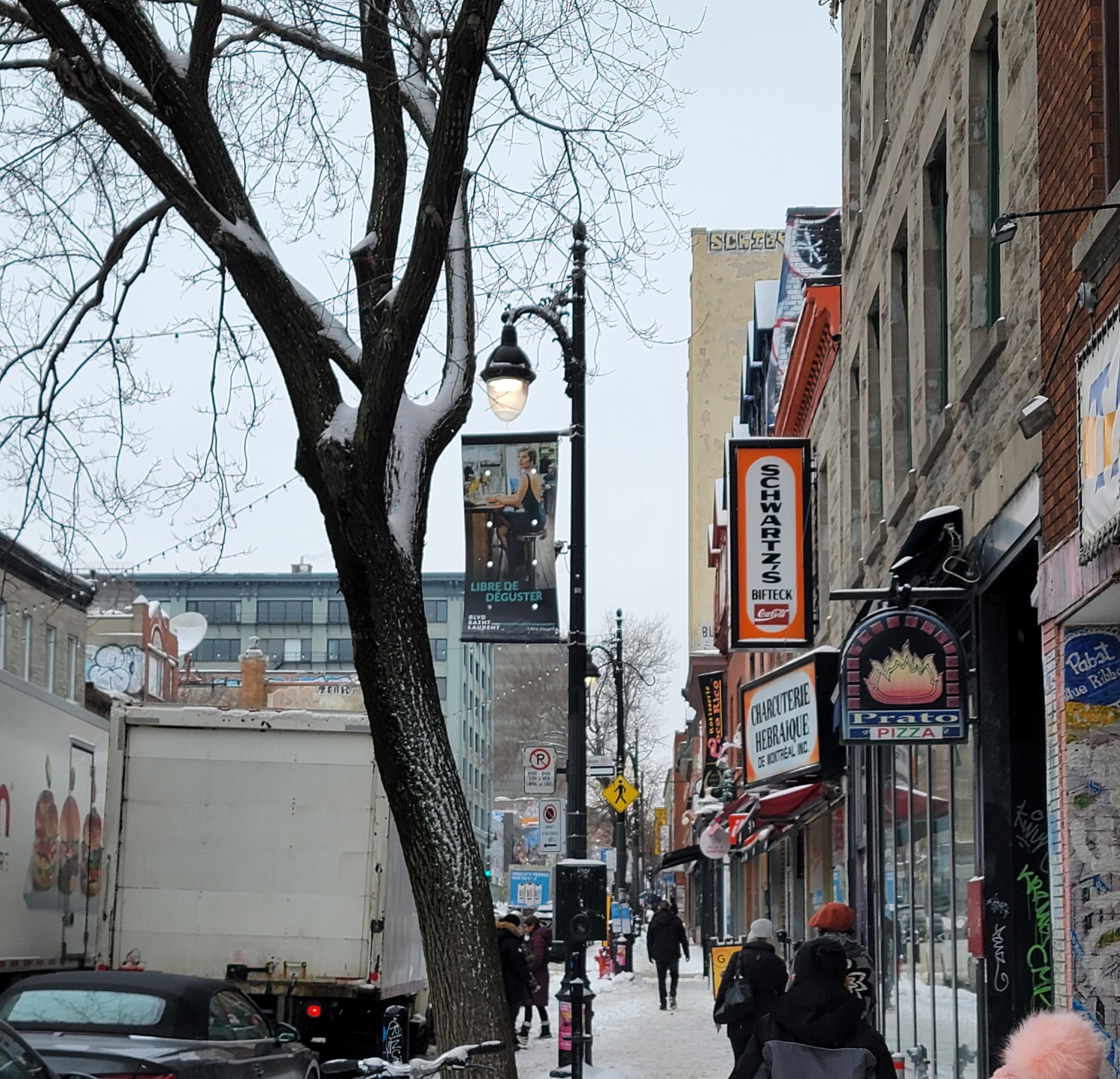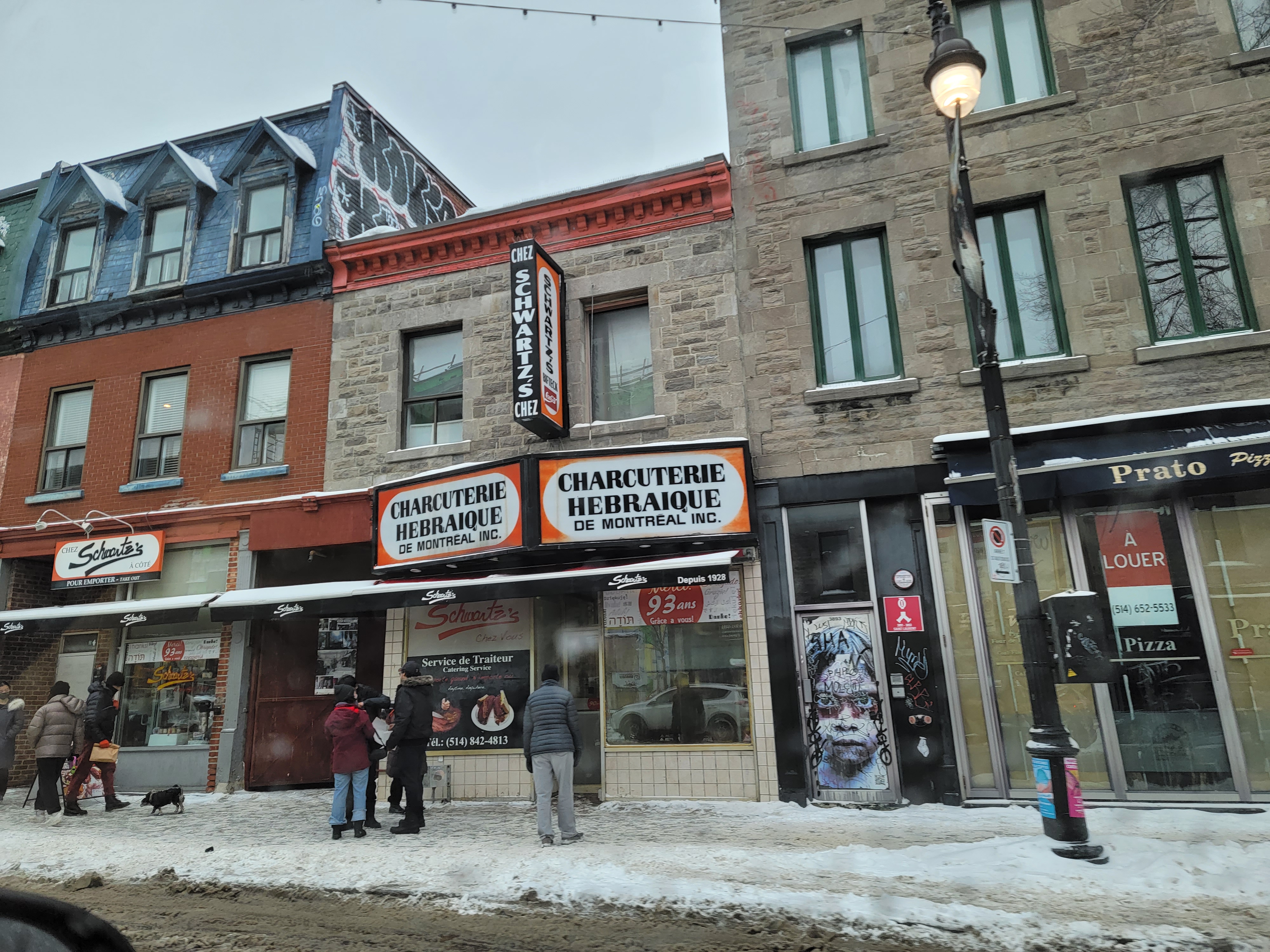 저 앞에 Schwartz's 오렌지 간판이 보입니다!