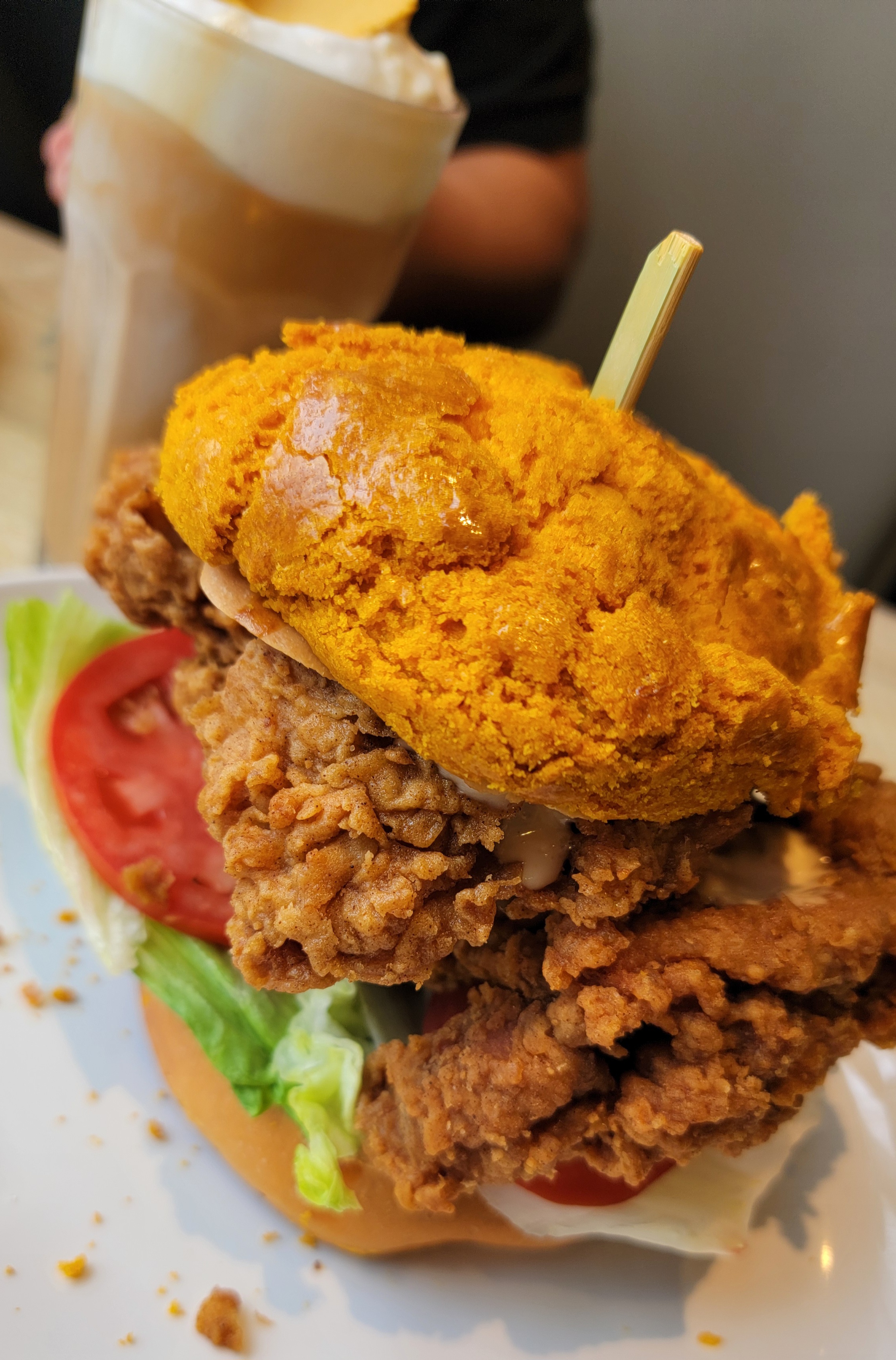 빵도 일반 햄버거 빵이 아니라 파인애플 번(pineapple bun)이라고 우리나라 소보루빵 비슷한 빵이라